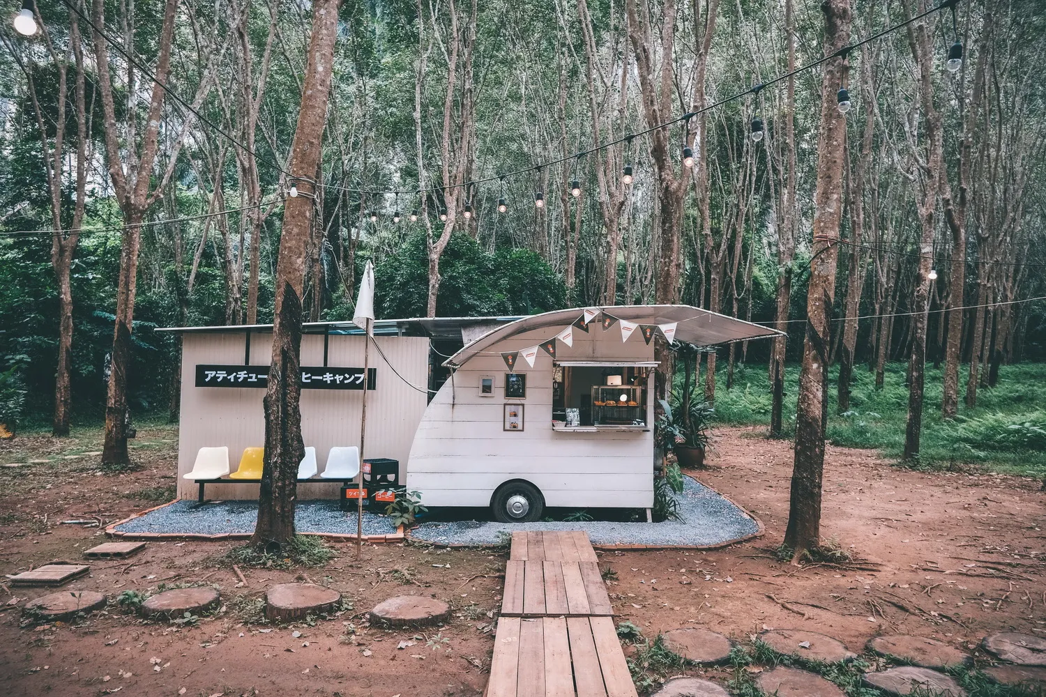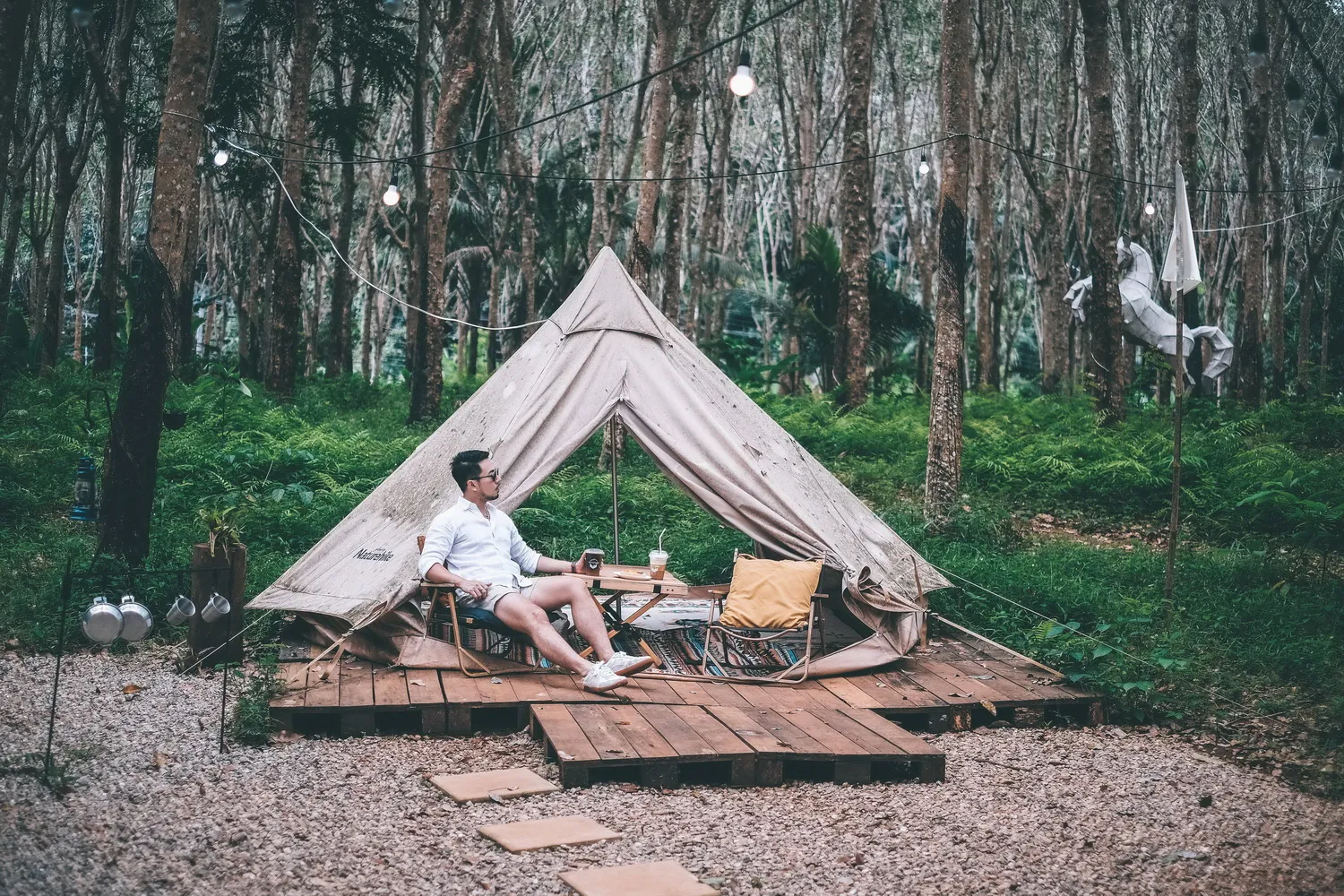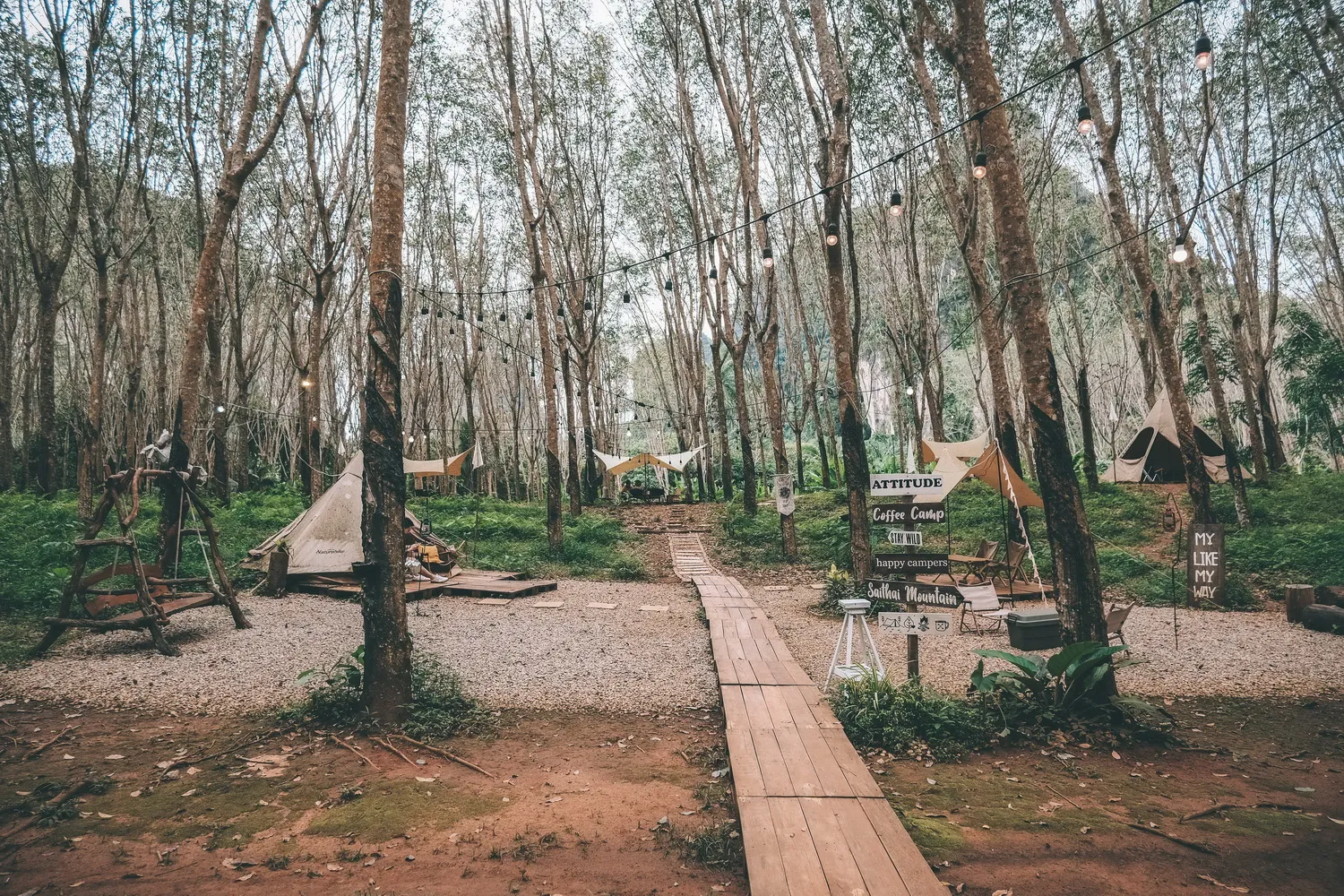 คาเฟ่ไม่ลับสไตล์แคมป์ปิ้ง กลางสวนยางพารา บรรยากาศแบบใกล้ชิดธรรมชาติสุด ๆ นั่งจิบกาแฟชิล ๆ ก็ได้รูปปัง ๆ เหมือนมาแคมป์ปิ้งจริง ๆ เลย แต่ยุงก็จะเยอะหน่อยนะ ตัวเท่าแม่ไก่เลยหล่ะ ฮ่า ๆ แต่ที่ร้านเค้าก็มีสเปรย์กันยุงให้ฉีดนะ อยู่ห่างจากอ่าวนางประมาณ 15 นาที ตัวร้านจะตั้งอยู่ในสวนยางพาราย ริเวณหัวโค้งของเขาไสไทย ฝั่งทางด้านซ้ายมือหากขับมาจากฝั่งอ่าวนาง