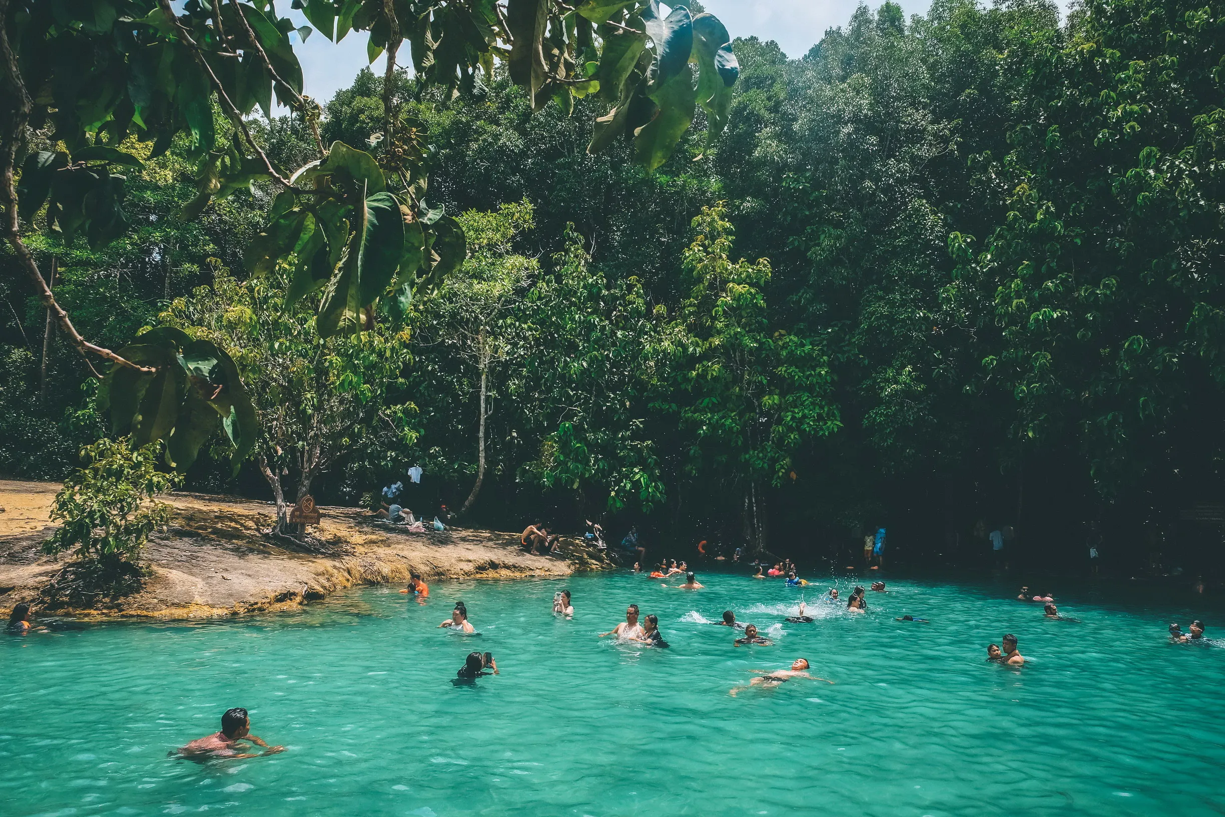 แลนด์มาร์กเด่นของเมืองกระบี่ ใสจริงหรือจกตา ก็ต้องมาให้เห็น สระน้ำสวยใสกลางใจป่า มีลักษณะเป็นบ่อหินปูน น้ำใสสระมีสีเขียวมรกต ความใสทำให้เรามองเห็นพื้นหินข้างล่างได้ชัดเจน สามารถลงเล่นน้ำได้ น้ำในสระมรกตสามารถเปลี่ยนสีไปได้ตามวันเวลา และสภาพแสง บริเวณรอบ ๆ ก็ยังมีศาลาให้นั่งพักผ่อนหย่อนใจ ชมวิวทิวทัศน์ แถมยังมีสะพานไม้ที่เชื่อมออกจากป่าสู่ศาลาริมน้ำในบรรยากาศแสนร่มรื่น เดินเล่นไปเรื่อย ๆ ศึกษาเส้นทางธรรมชาติ ชมนกชมไม้ก็เพลิดเพลินเช่นกัน