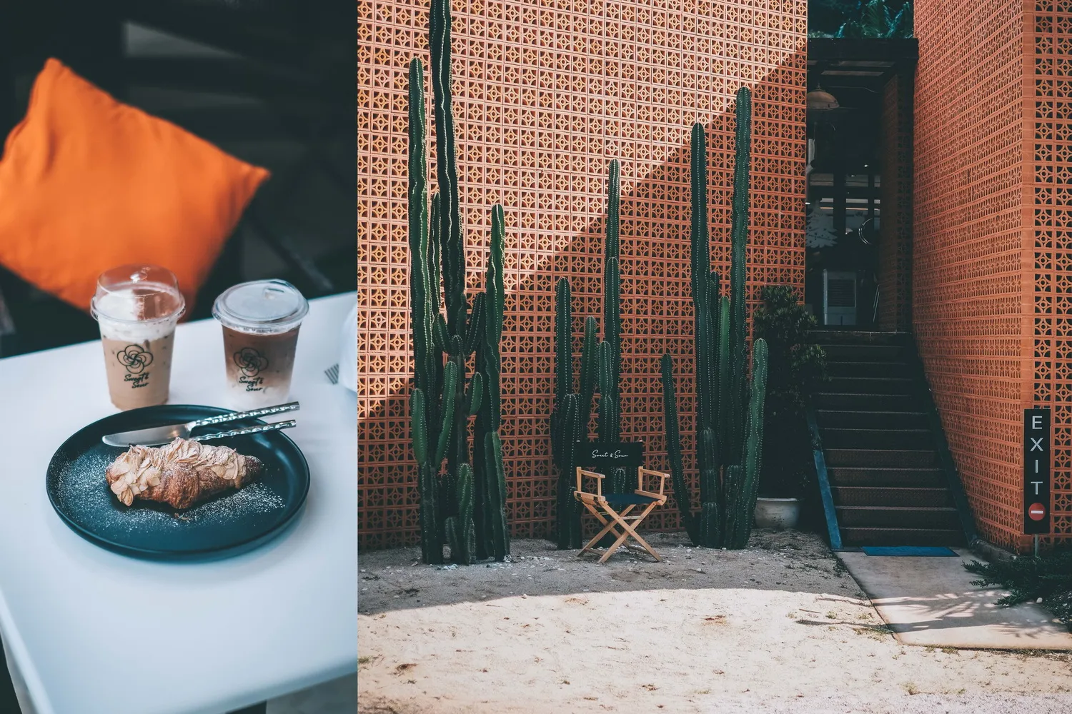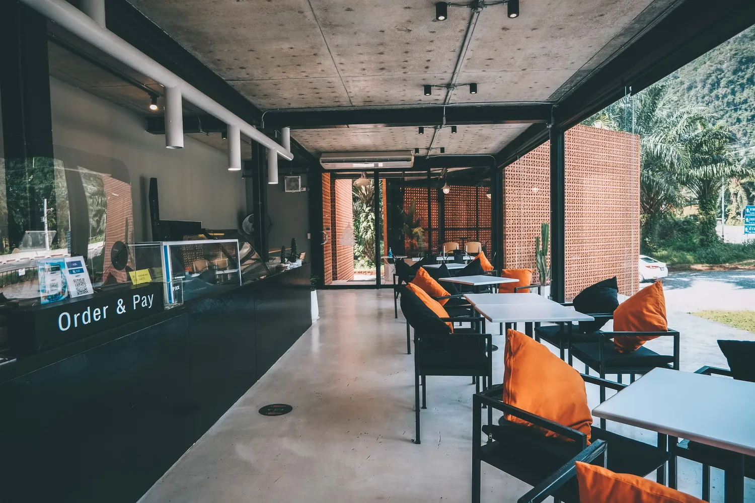 คาเฟ่ทรงเหลี่ยมอิฐสีส้มตั้งเด่นริมทาง วิวภูเขาสีเขียว สะดุดตามาก ๆ จนต้องเลี้ยวแวะเข้ามาถ่ายรูปให้ได้ ที่ร้านมีบริการทั้งอาหาร เครื่องดื่ม รวมถึงเมนูไอศรีม มีมุมถ่ายรูปอยู่หลายมุมเลยทีเดียว หากใครแวะมาที่นี่ควรเน้นเป็นบรรยากาศช่วงเช้าจะถ่ายรูปด้านนอกร้านได้แสงสวย ๆ