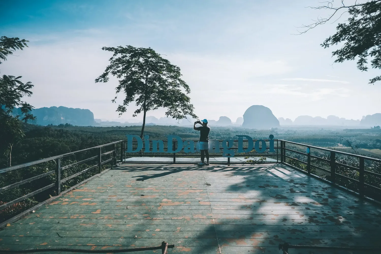 นอกจากวิวทะเลปัง ๆ แล้ว ที่กระบี่ก็ยังมีจุดชมวิวมุมสูง แบบ 360 องศา แสงอาทิตย์ในยามเช้าพร้อมสัมผัสกับทะเลหมอก กันที่ดินแดงดอย ซึ่งอยู่ห่างจากตัวเมืองกระบี่ไปประมาณ 20 กิโลเมตร เป็นเนินเขาที่ไม่สูงมาก แต่ต้องเดินเท้าขึ้นไปอีกประมาณ 400 เมตร เพื่อมาชื่นชมความสวยงามอีกมุมหนึ่งของกระบี่ ค่าบำรุงสถานที่คนละ 20 บาท ข้างบนนอกจากจะเป็นจุดชมวิวแล้ว ก็ยังเป็นลานกางเต็นท์ และมีให้บริการในส่วนของร้านอาหาร คาเฟ่เล็ก ๆ