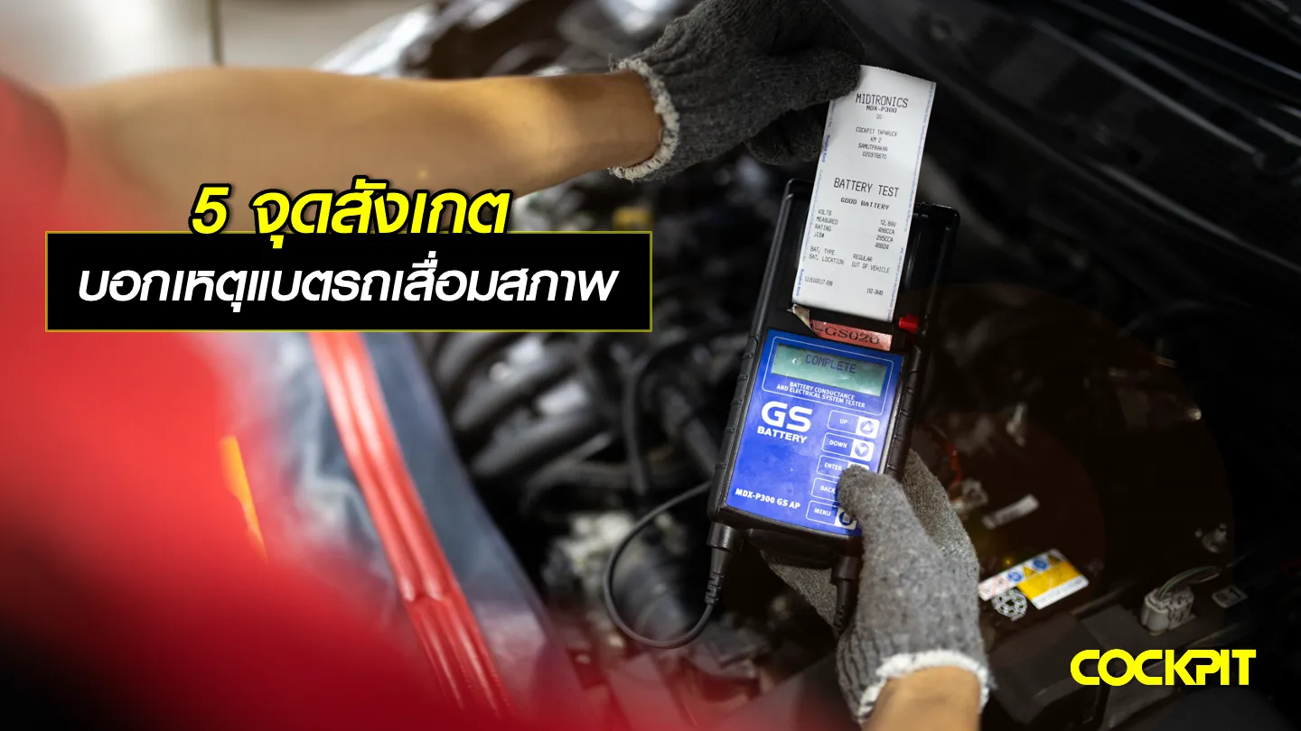 วันนี้ ค็อกพิท จะพาทุกท่านมาสังเกตอาการผิดปกติของ 5 จุดนี้ ที่บ่งบอกอาการแบตเตอรี่เสื่อมสภาพ หากรถของคุณมีปัญหา ดังนี้ ควรเปลี่ยนแบตเตอรี่รถยนต์ใหม่ทันที