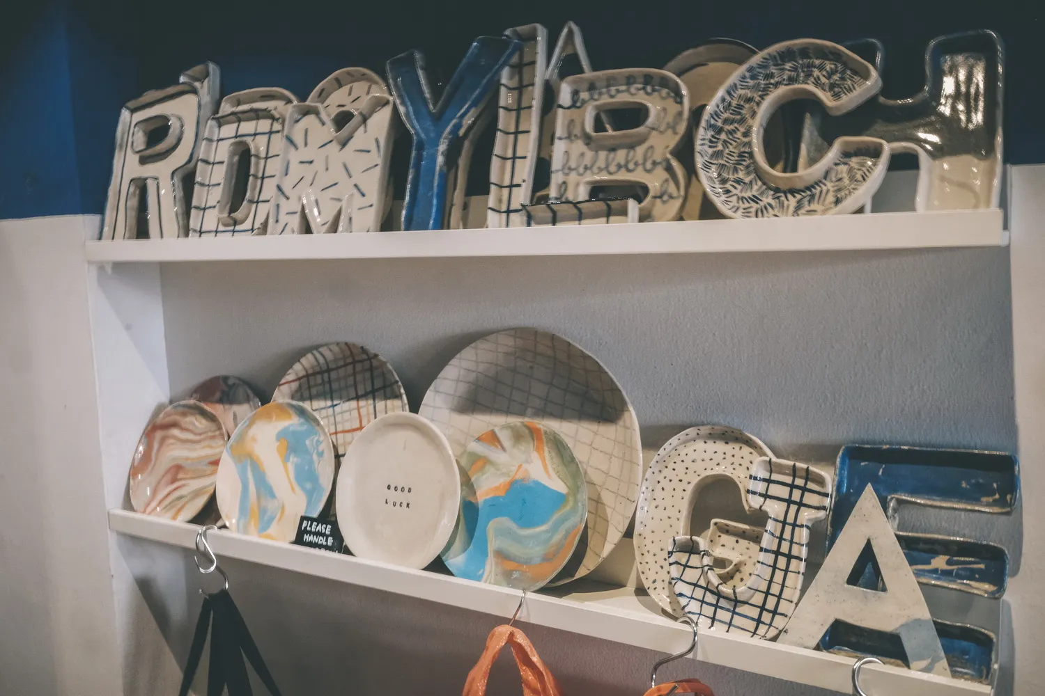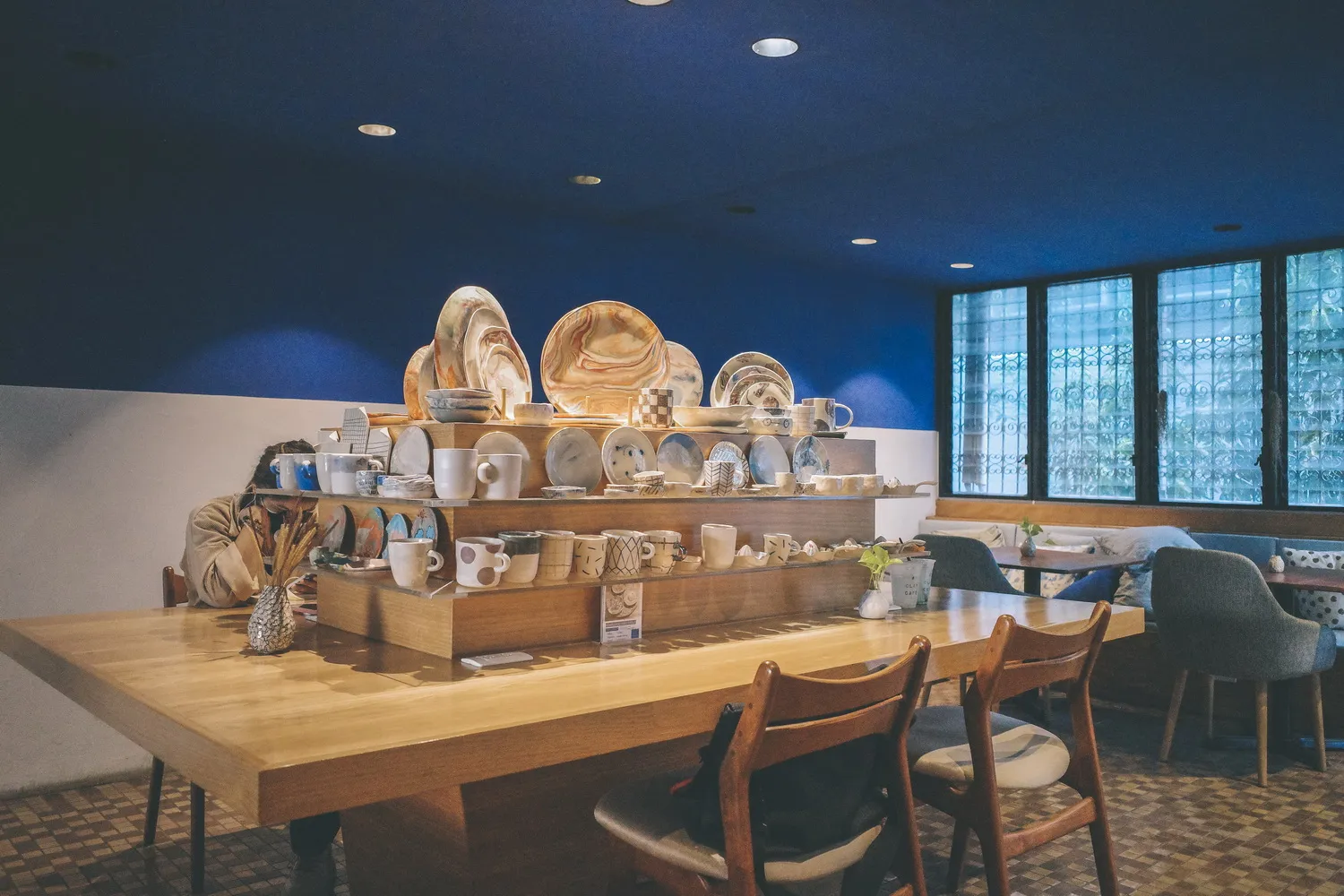 มีผลงานเซรามิคที่นำมาวางขายในร้าน จากแบรนด์ A Clay Ceramic ให้ได้เลือกซื้อติดไม้ติดมือกลับบ้านไปอีกด้วย