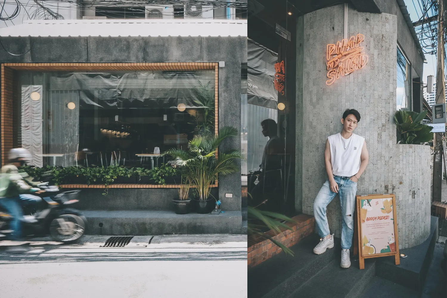 Pimp My Salad เอาใจสายเฮลท์ตี้ ด้วยร้านอาหารสุขภาพเจ้าดังจากสิงคโปร์ ที่เค้ายกมาเปิดใจกลางสาทร บริเวณด้านหน้าร้านกับโทนสีเทาดิบ ๆ สไตล์ลอฟท์ ที่ด้านนอกติดกระจกใสบานใหญ่ แต่เมื่อผลักประตูเข้าไปในร้านแล้วเราจะได้สัมผัสกับบรรยากาศสบาย ๆ กว้างขวาง สไตล์ Work Space ที่เราสามารถ Enjoy Eating กับอาหารได้อย่างไม่ต้องเร่งรีบ
