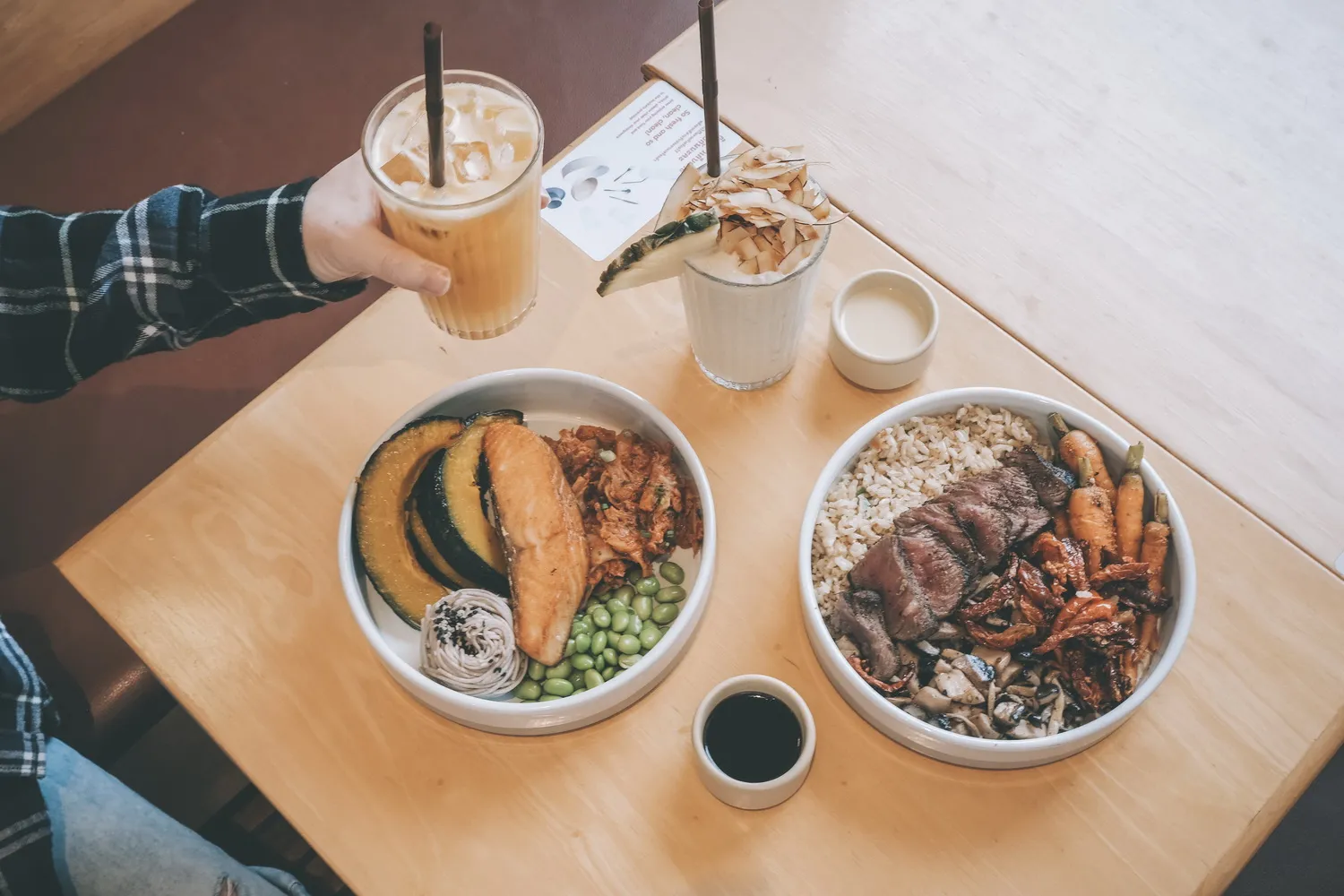 เราสามารถเลือกเมนูอาหารได้ทั้งแบบโบลว์ที่ทางร้านเซ็ทไว้ให้ หรือเลือกตามใจที่ชอบแบบ DIY เองก็ได้ นอกจากนี้ยังมีอาหารเช้า ของหวาน น้ำผลไม้ และกาแฟ