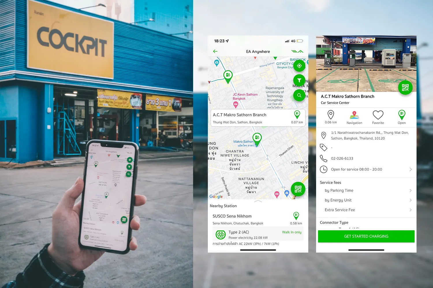 สถานีชาร์จรถยนต์ไฟฟ้า จะแบ่งออกเป็น 2 ประเภท คือการชาร์จแบบธรรมดา (AC Normal Charge) และการชาร์จแบบเร็ว (DC Fast Charge) ซึ่งที่ Cockpit แม็คโคร สาทร จะมีให้บริการทั้ง 2 แบบ