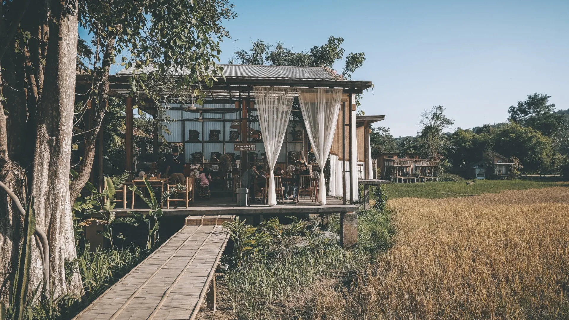 คาเฟ่ และที่พัก บ้านไม้สไตล์ทรอปิคอล กลิ่นอายแบบมินิมอลผสมญี่ปุ่นหน่อย ๆ ดูอบอุ่น น่าพักผ่อนท่ามกลางบรรยากาศกลางทุ่งนา บรรยากาศดี๊ดี ถือว่าเป็นอีกหนึ่งจุดเช็คอินอินสวย ๆ แห่งใหม่ของเมืองน่าน