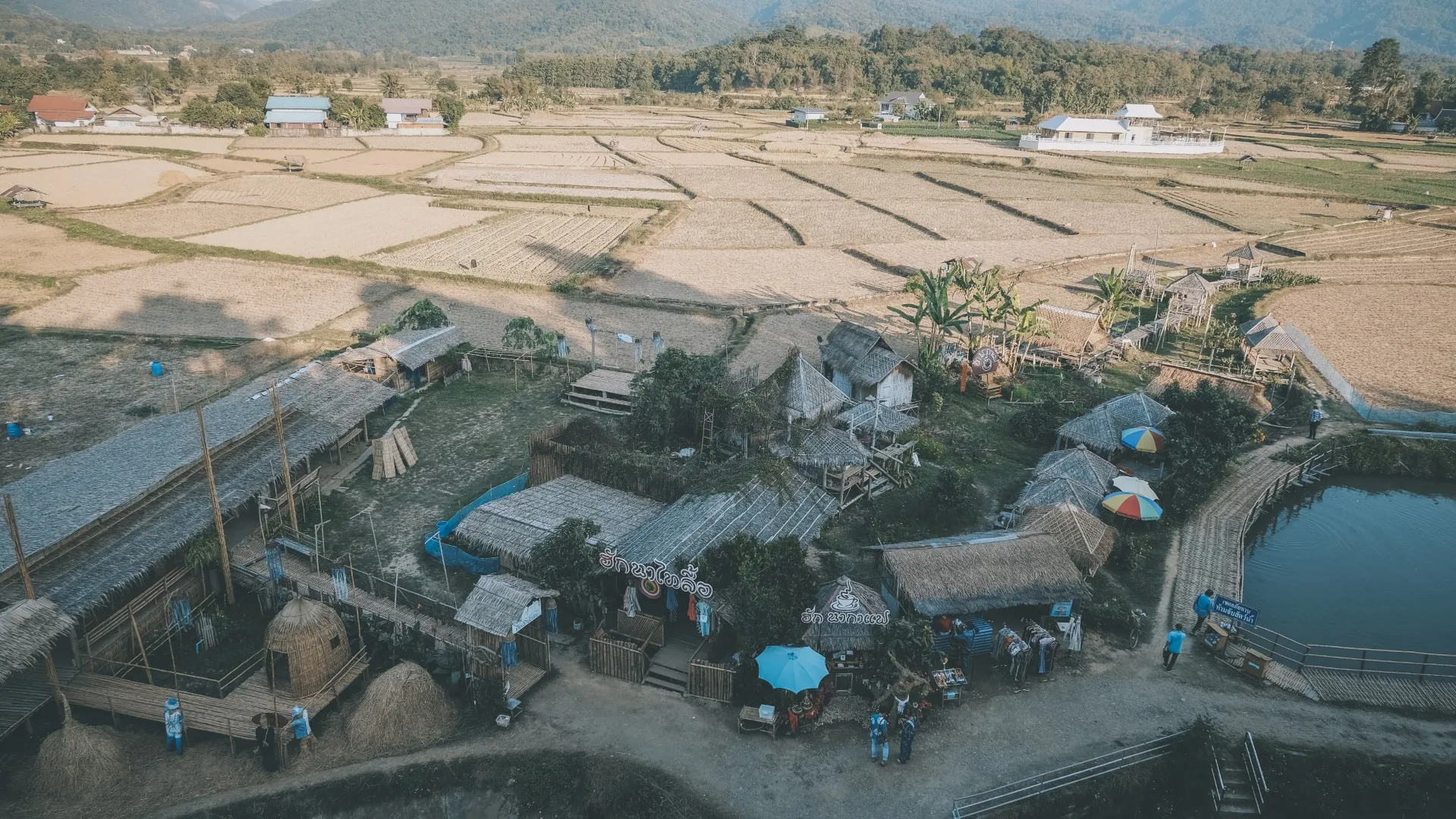 คาเฟ่วิวทุ่งนาระดับตำนานแห่งเมืองปัว บรรยากาศกระท่อมปลายนา สไตล์ไทลื้อพื้นบ้าน ร้านกาแฟไทลื้อ เป็นส่วนหนึ่งของร้านลำดวนผ้าทอ ร้านขายผ้าพื้นบ้าน นั่งจิบกาแฟชิล ๆ นั่งเล่น นอนเล่น รับลมเย็น ๆ ชมวิวนาข้าว และขุนเขาที่อยู่เบื้องหน้า