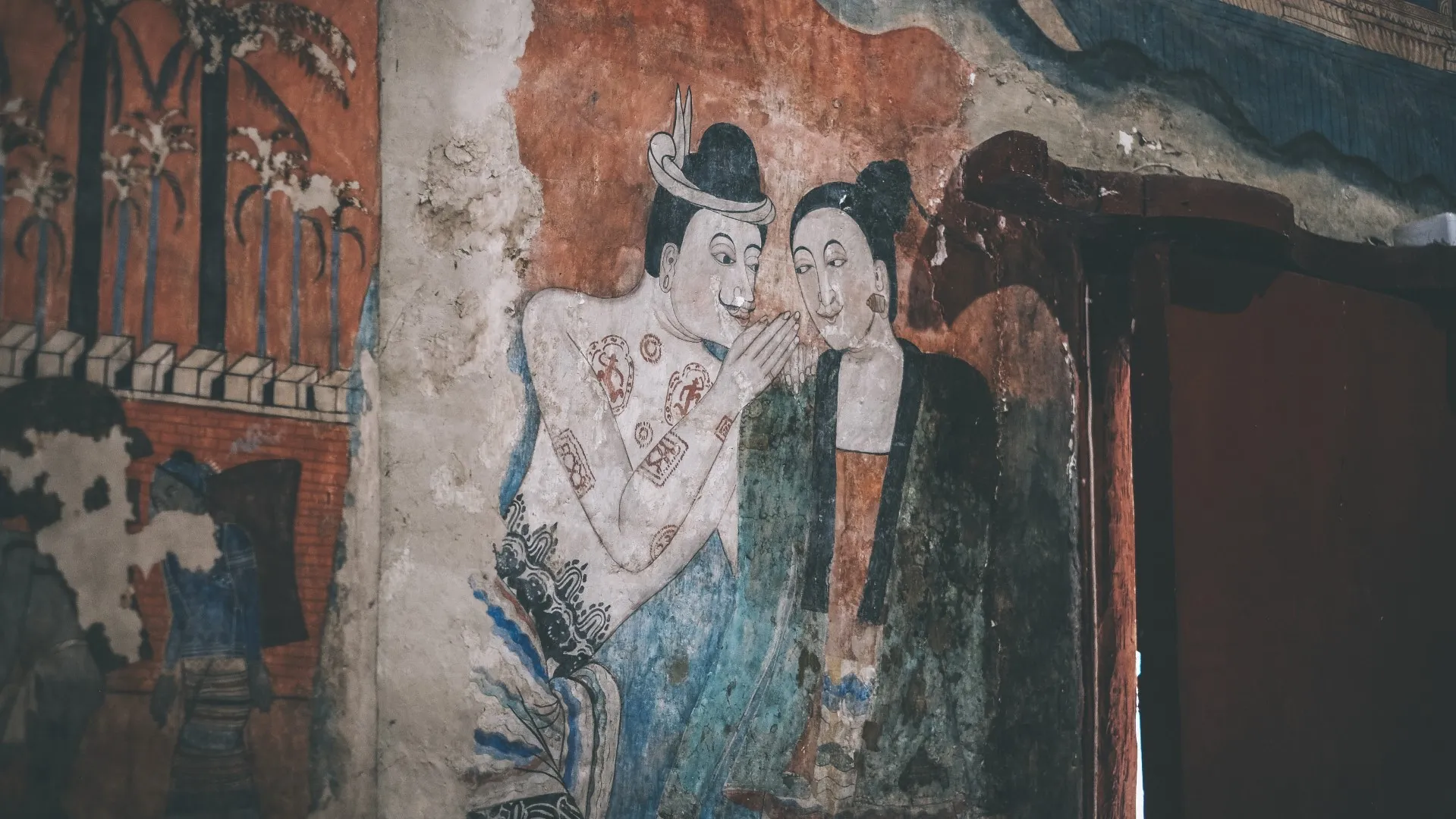 ดาวเด่นซิกเนเจอร์ที่ใครมาน่านก็ต้องแวะ ภาพกระซิบรักบรรลือโลก หรือภาพปู่ม่านย่าม่าน ซึ่งเป็นรูปวาดชาวไทลื้อในสมัยโบราณ บริเวณภายในวัดภูมินทร์ อีกหนึ่งวัดเก่าแก่ที่มีอายุกว่า 400 ปี