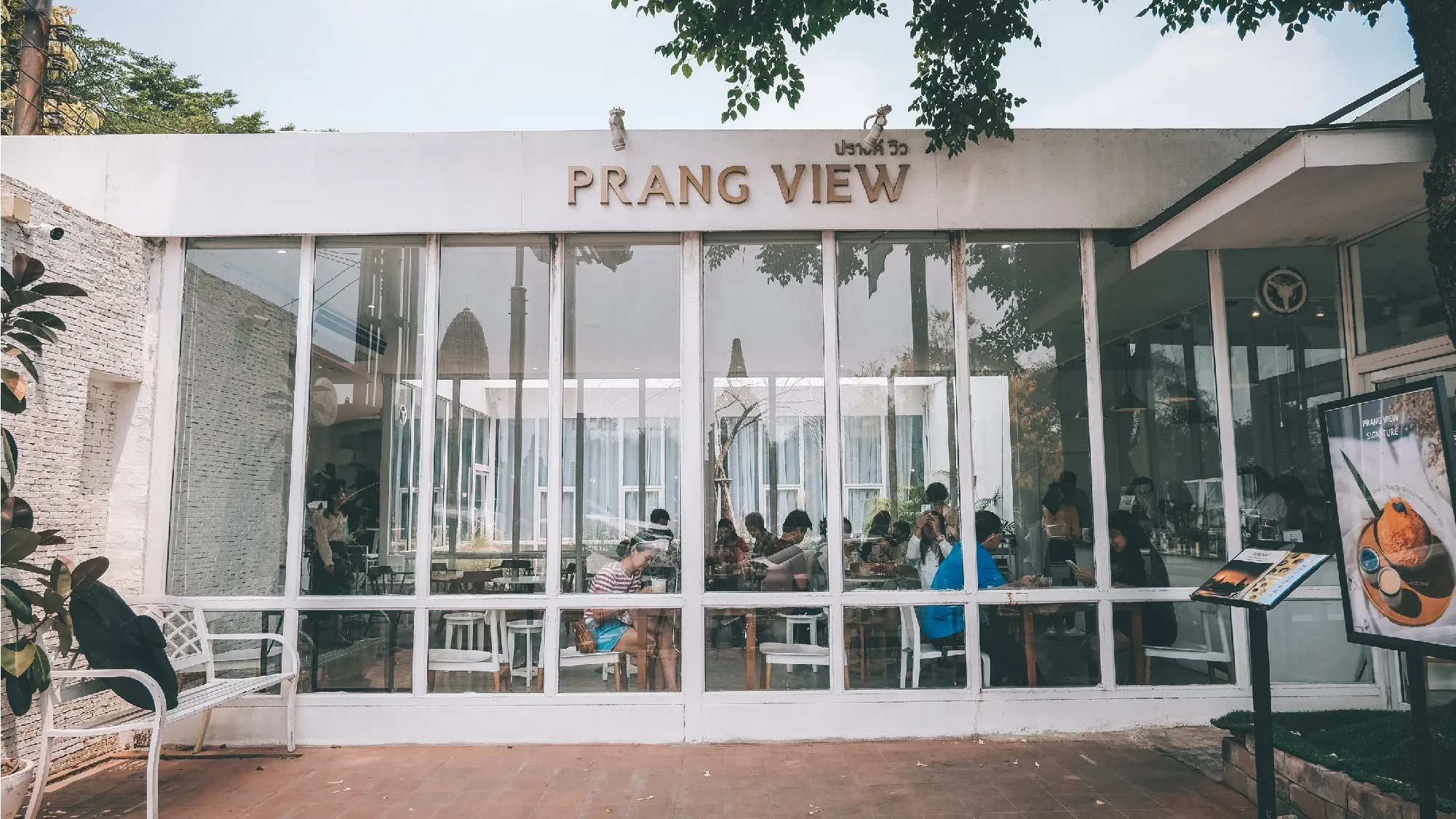 คาเฟ่สีขาวสะอาดตา โลเคชั่นดี๊ดี วิวพระปรางค์ ตรงข้ามวัดมหาธาตุ ที่มีครบจบทั้งคาวหวาน ตัวร้านค่อนข้างโล่งโปร่งสบาย มีที่นั่งพอสมควร เมนูพวกเครื่องดื่มที่นี่มีความครีเอทมาก ๆ เหมาะสำหรับถ่ายภาพลง IG เป็นอย่างมาก อีกมุมไฮไลท์จะอยู่ที่ด้านหน้าร้าน ที่จัดเป็นโต๊ะเล็ก ๆ ริมถนน ให้ได้ถ่ายรูปนั่งจิบการแฟ แบล็คกราวด้านหลังเป็นวิวพระปรางค์ **แต่ถ้ามีรถจอด มุมนี้ก็คือจบเลยนะ ไม่ได้รูป ฮ่าๆ เพราะเราก็เป็นหนึ่งในนั้นที่ไม่ได้รูปมุมนี้เพราะมีรถจอดอยู่ ข้อเสียคือไม่มีที่จอดรถ ต้องไปหาจอดในซอยข้าง ๆ หรือสามารถจอดได้ตามข้างทาง