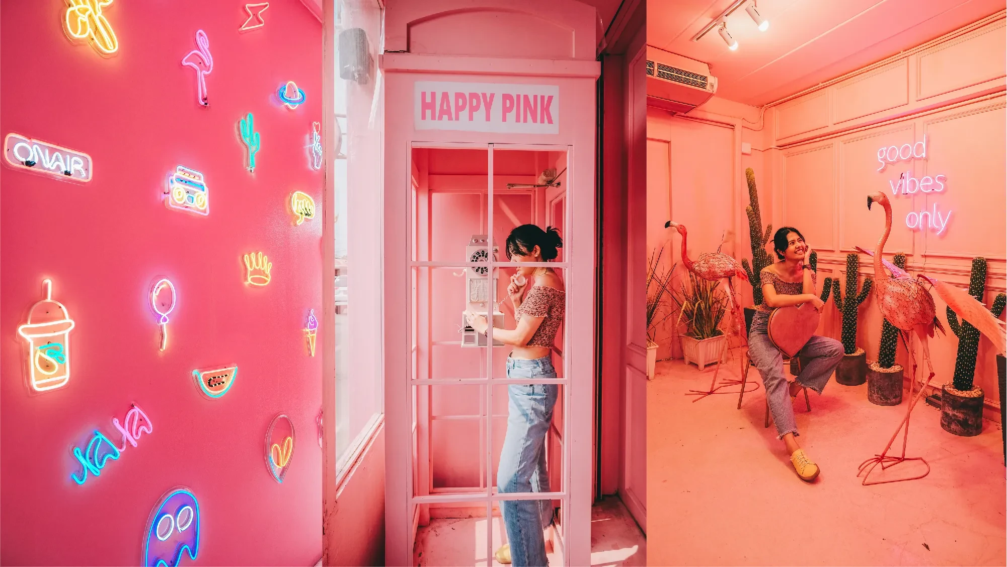 นี่ไม่ได้อยู่เกาหลีนะ แต่ฟีลมันได้มากแม่ แบล็คพิ้ง อิน ยัว แอเรีย ไปเลยจ้า ร้านตั้งอยู่บริเวณ ตลาดโต้รุ่ง รุ่งเจริญ ข้าง 7-11 โรงเรียนอยุธยาวิทยาลัย ตึก Happy Pink (ตึกสีชมพู) โดดเด่น สายเกา สายหวาน ห้ามพลาดเลยจ้า มุมถ่ายรูปเพียบ มีทั้งหมด 5 ชั้น จุดสั่งเครื่องดื่มจะอยู่บริเวณชั้นที่ 1 ทางร้านมีเขียนไว้ชัดเจนนะว่ากรุณาสั่งเครื่องดื่ม 1 แก้ว ต่อ 1 ท่าน สั่งเสร็จรอรับเครื่องดื่มก็ไปหามุมถ่ายรูปกันได้เลยจ้า แต่ละชั้นก็มีมุมถ่ายที่เค้าจัดไว้แตกต่างกันในแต่ละชั้น เรียกว่าถ่ายรูปเหนื่อยไปเลยแม่ ไม่พูดเยอะแล้วกัน ใครชอบแนวนี้ก็คือต้องมาแหละ เพราะได้รูปจุกมาก