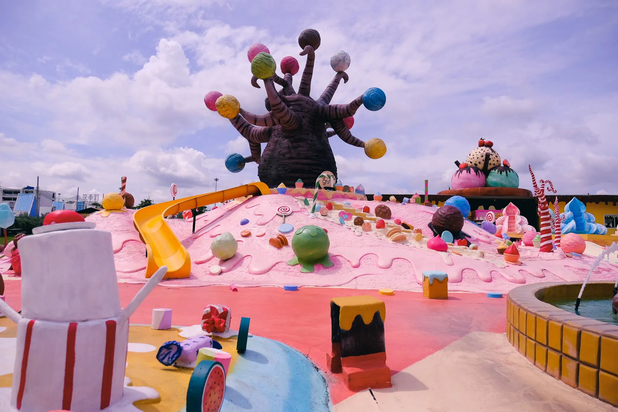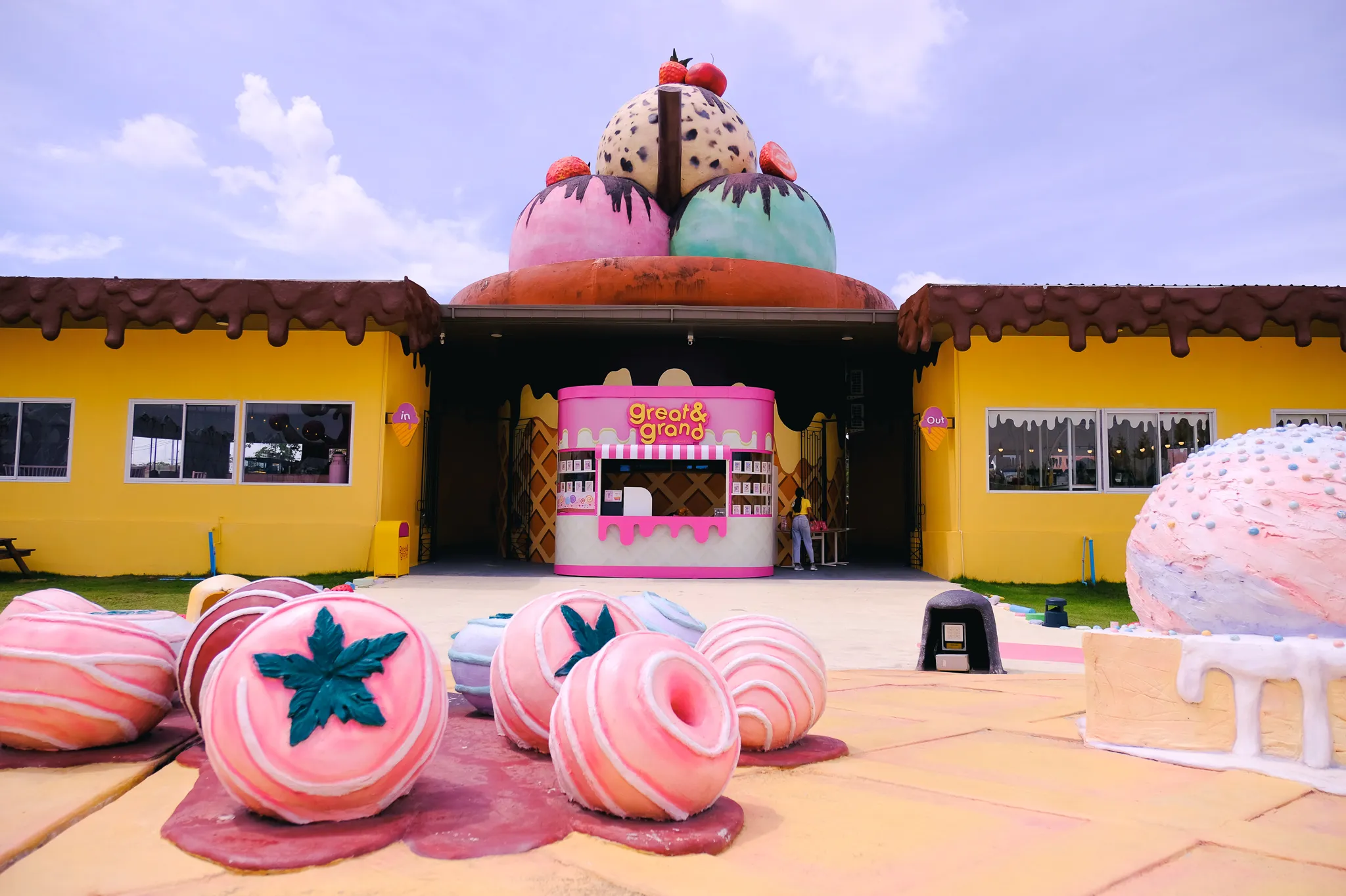 คาเฟ่ไอติม จุดถ่ายรูปสุดคิ้วท์แห่งเมืองพัทยา เหมือนได้มาตะลุยดินแดนขนมหวานสีสันคัลเลอร์ฟูล ที่ทุกคนจะต้องร้องอู้หู เมืองไอศครีมยักษ์ เต็มไปด้วยบรรดาของหวานต่าง ๆ ขนมยักษ์มากมาย ทั้งไอศกรีม ขนมเค้ก บ้านขนมปัง ละลานตาเต็มไปหมดเหมือนหลุดไปในดินแดนมหัศจรรย์เลยก็ว่าได้ แน่นอนว่าทุกคนจะได้ถ่ายรูปกันเพลิน ๆ แบบเต็มอิ่มอย่างแน่นอน เพราะมุมไหนก็ดูน่ารักไปหมด เตรียมตัวเตรียมเมมการ์ดไปถ่ายภาพสวย ๆ ไว้ได้เลย นี่แหละสวรรค์ของคนรักของหวานที่แท้ทรู