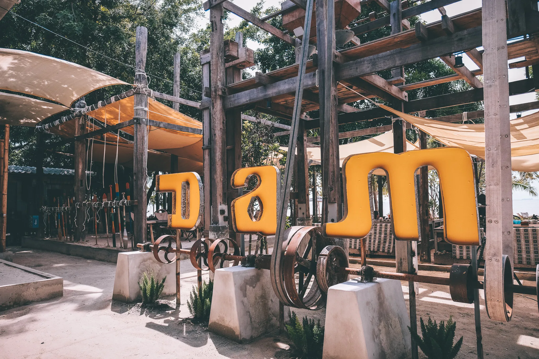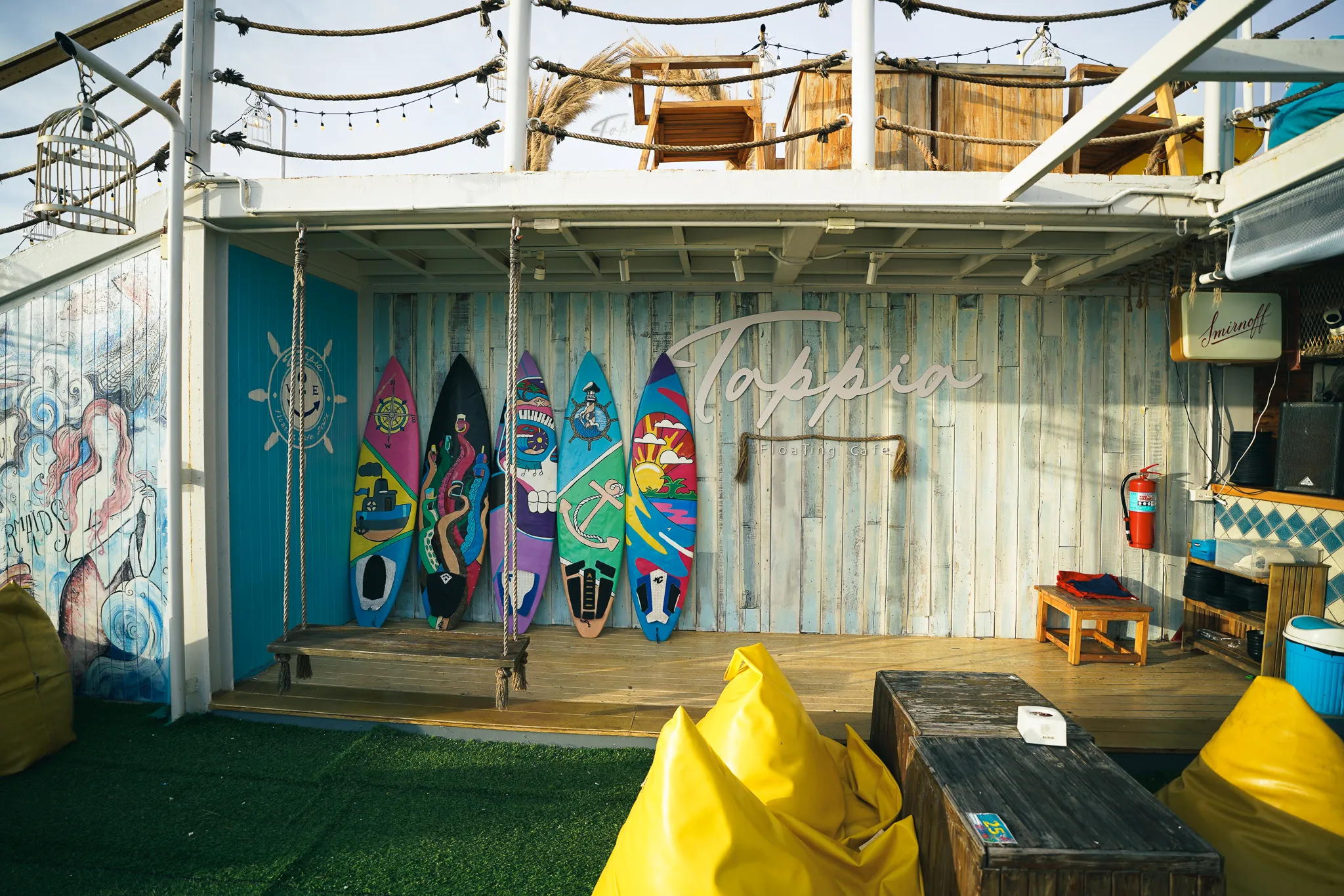 คาเฟ่ และร้านอาหารริมทะเล บรรยากาศดี๊ดี เป็นอีกหนึ่งร้านที่บอกได้เลยว่าน่านั่งมาก หลากหลายสไตล์เอามามิกซ์กันในแต่ละโซนก็จะได้กันคนละฟีล โครงสร้างหลัก ๆ จะเป็นการตกแต่งแบบอินดัสเทรียล มีการนำเครื่องจักรเก่าจากโรงงาน และไม้เก่ามาตกแต่งเป็นธีมหลักของร้าน มุมเกาหลีเกาใจก็ยังมีเลย ส่วนโซนด้านนอกก็ชิล ๆ ฟีลบาหลี ถัดออกไปริมหาดก็มีมุมแคมป์ปิ้ง เอาสิแต่ละมุมถ่ายรูปสวย ๆ ทั้งนั้น ถ้ายิ่งได้มาช่วงเย็น ๆ บรรยากาศดีมาก ๆ ใครกำลังหาร้านนั่งชิลบรรยากาศดี ๆ ริมทะเลเล่นน้ำทะเลได้ เป็นอีกร้านที่แนะนำเลย