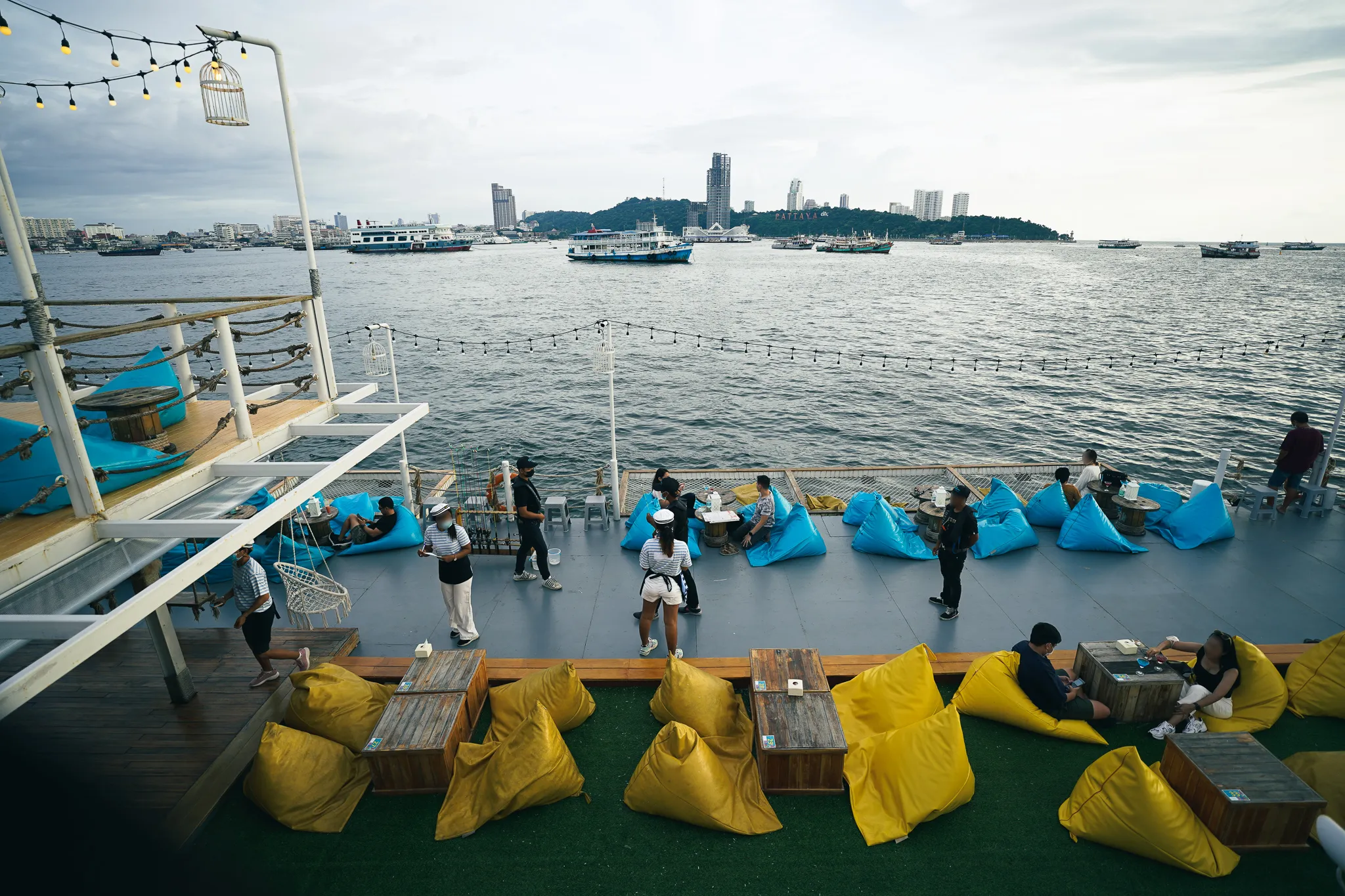 คาเฟ่ลอยน้ำกลางทะเลพัทยา พร้อมกับกิจกรรมตกหมึกที่ไม่ควรพลาด ใครมาพัทยาช่วงนี้ต้องมาโดนแล้ว ชิมหมึกซาชิมิ แบบสด ๆ ที่เพิ่งขึ้นจากทะเลใหม่ ๆ ขอบอกเลยว่าหวานกรอบอร่อยสุด ๆ จะตกเองกินเองก็ฟินทั้งนั้น สำหรับใครที่ไม่กินของดิบ ก็ยังมีเมนูหมึกอื่น ๆ อีกด้วยนะไม่ว่าจะเป็น หมึกย่าง หมึกทอด หมึกยำ หรือเมนูอาหารซีฟู้ดก็มีอีกเพียบ รับรองว่าอิ่มหนำสำราญแน่นอน บรรยากาศนี่ไม่ต้องพูดถึงชิลสุด ๆ ไปเลย มุมถ่ายรูปสวย ๆ ก็มีเพียบ สามารถชมวิวรอบอ่าวพัทยาได้แบบ 360 องศา ยิ่งบรรยากาศในช่วงเย็น ๆ พระอาทิตย์ตกดินแสงสวยมาก ๆ ถ่ายรูปคือปังเว่อร์
