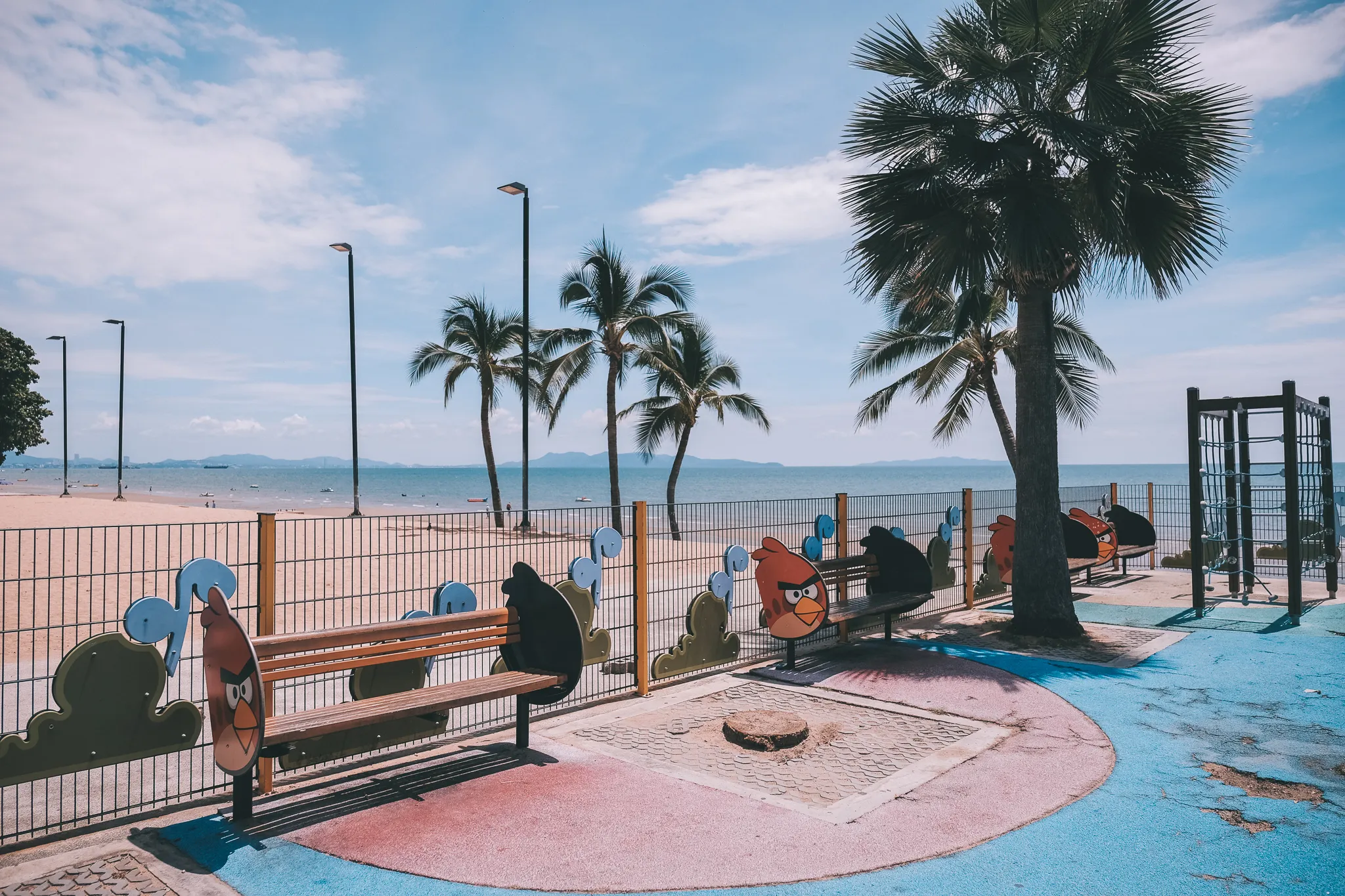 สนามเด็กเล่นสีสันสดใส ที่ตั้งอยู่บริเวณริมหาดจอมเทียน ที่มาในธีม Angry Birds น่ารักสะดุดตา ถึงจะขนาดไม่ได้ใหญ่มาก แต่ก็มีมุมน่ารัก ๆ ชวนให้แวะซะเหลือเกิน ใครผ่านไปผ่านมาแถวหาดจอมเทียนก็อย่าลืมแวะมาถ่ายรูปเล่นกันได้นะ ยิ่งมุมเดินข้ามทางม้าลาย รอสัญญาณไฟเขียว ก็ได้รูปฟีลเหมือนเดินอยู่ต่างประเทศเบา ๆ เลยนะ อีกหนึ่งสนามเด็กเล่นริมทะเลที่บรรยากาศชิลมาก ๆ