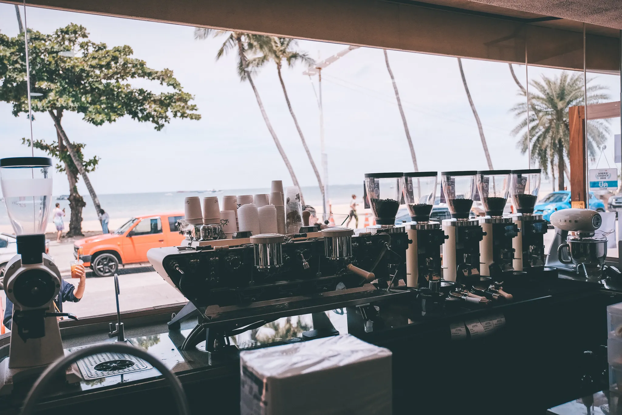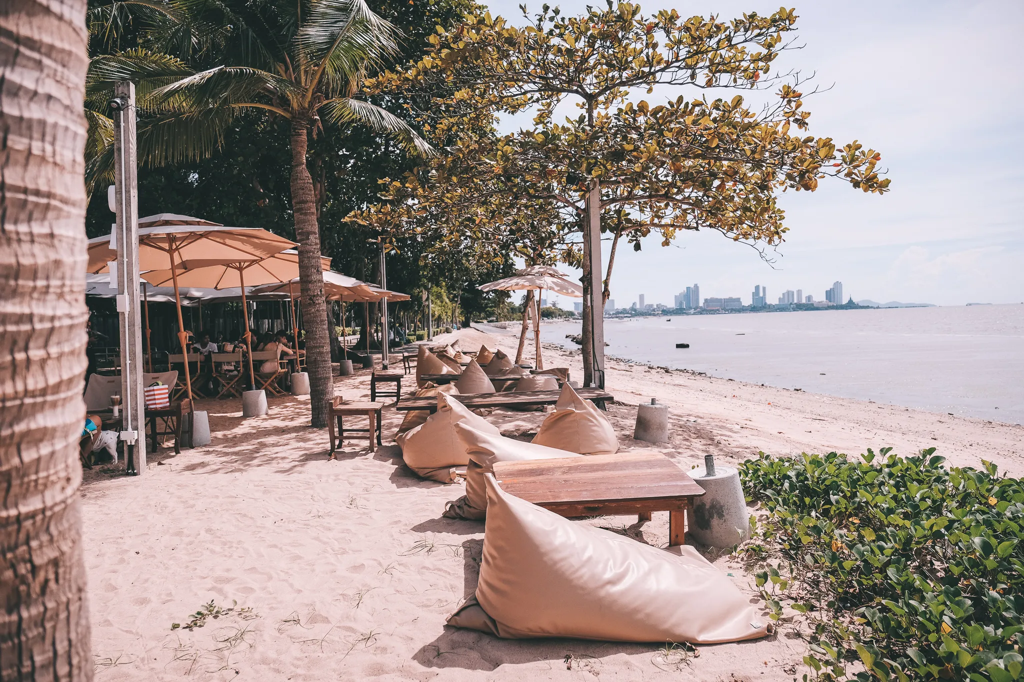คาเฟ่ริมหาดพัทยา ที่คอกาแฟห้ามพลาด สำหรับร้านกาแฟแบบ Specialty กาแฟดี วิวดี บรรยากาศริมทะเล ในส่วนของเครื่องดื่มก็มีค่อนข้างหลากหลายเลยทั้ง Coffee และแบบ Non-coffee มีให้เลือกครบ ใครสายกาแฟแนะนำที่นี่เลย เมล็ดกาแฟมีให้เลือกเยอะมาก แบบ ก.ไก่ ล้านตัว ราคาเครื่องดื่มแต่ละแก้วเริ่มต้นที่ 100-200 บาท ตัวร้านเล็ก ๆ ไม่ใหญ่มาก ที่นั่งมีทั้งส่วนของ Indoor และ Outdoor แถมยังมีเก้าอี้แคมป์ปิ้งให้ลูกค้ายืมไปถ่ายรูปชิค ๆ วิวหน้าร้าน หรือชมวิวริมหาด รอดูพระอาทิตย์ตกตอนเย็นก็ยังได้