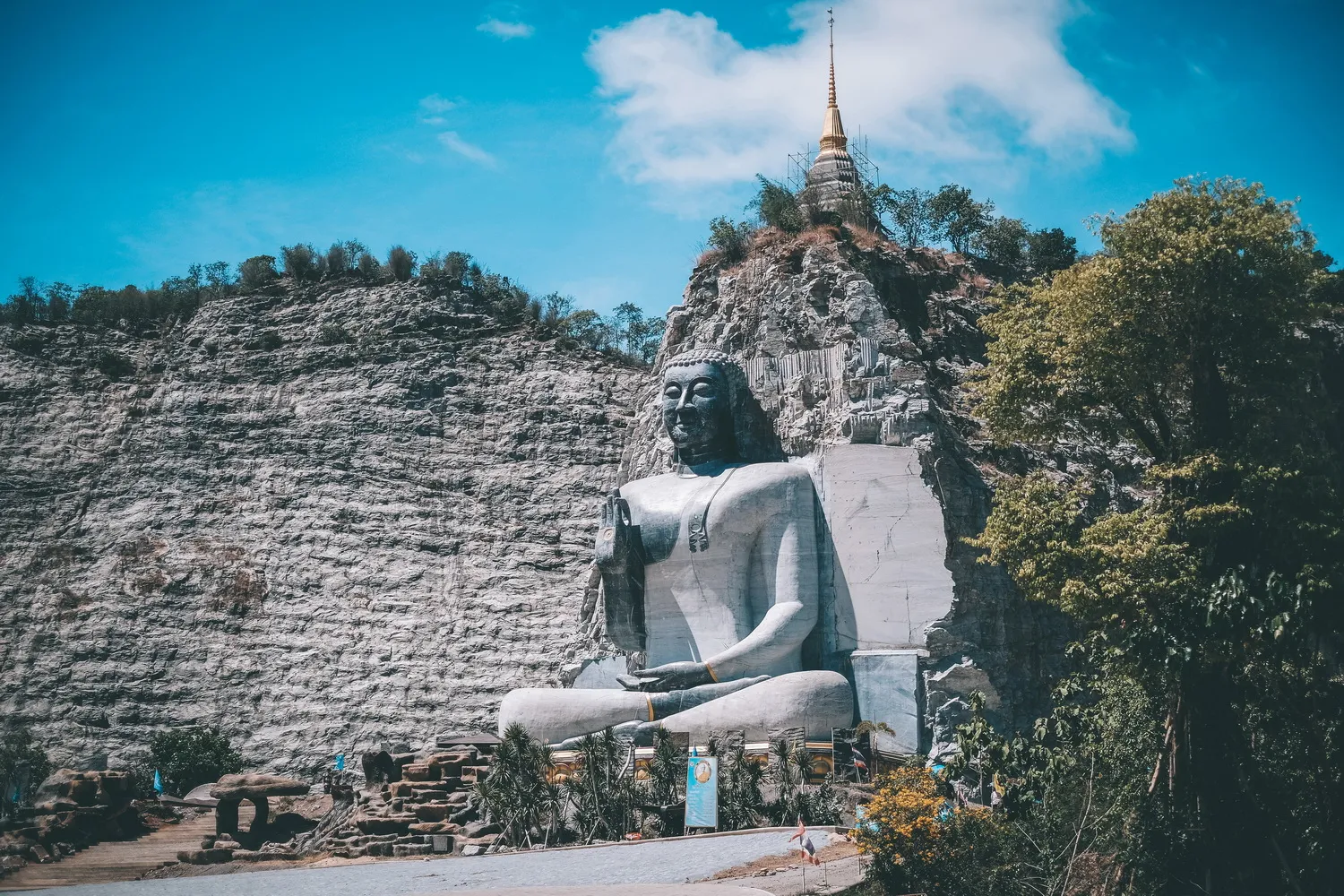 ความอลังการงานสร้าง ที่เกิดจากความศรัทธา หลวงพ่ออู่ทอง เป็นพระพุทธรูปที่แกะสลักบนหน้าผินที่ใหญ่ที่สุดในโลก ตั้งอยู่ในพุทธมหาสถานเมืองโบราณอู่ทอง มีความสูงถึง 108 เมตร บริเวณด้านหลังของพระพุทธรูปมีการเจาะช่องอุโมงค์หินเป็นถ้ำลึกประมาณ 20 เมตร ด้านในอุโมงค์เป็นที่ประดิษฐานพระแม่ธรณีบีบมวยผม และพระพุทธรูปปางต่าง ๆ ให้นักท่องเที่ยวได้กราบไหว้ ด้านในอุโมงค์อากาศค่อนข้างเย็นสบายเพราะมีลมพัดผ่านเข้ามาตลอด