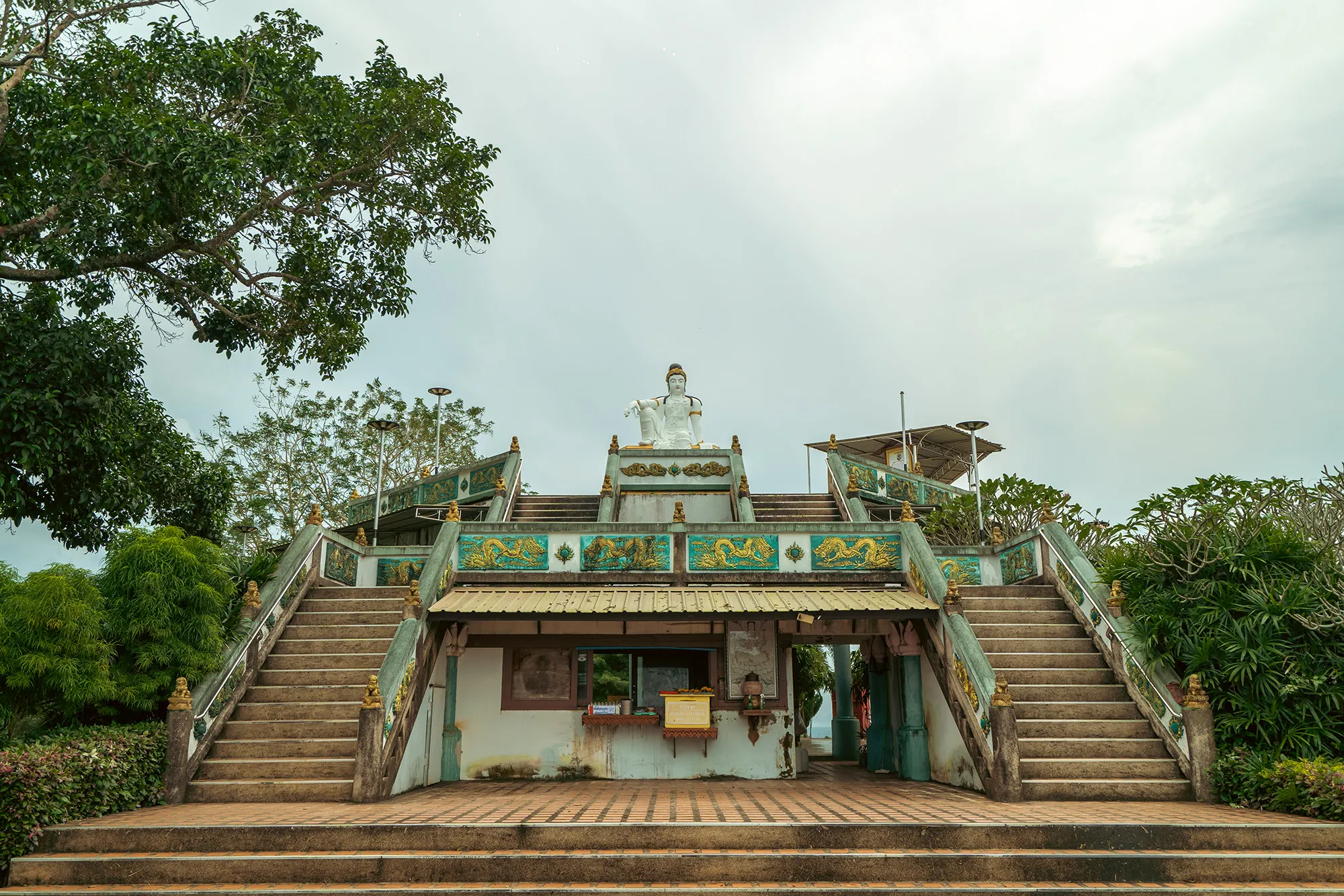 ด้านบนจุดชมวิวเขามัทรี มีพระโพธิสัตว์อวโลกิเตศวรปางมหาราชลีลาลักษณะคล้ายกับท่านั่งขององค์จตุคามรามเทพมองออก ไปที่ชายทะเลชุมพรด้านขวาเป็นหาดภราดรภาพ มองจากบนเขาเห็นชุมชนปากน้ำชุมพรและชายหาดปากน้ำชุมพรเป็นชุมชนขนาด ใหญ่เนื่องจากเป็นท่าเทียบเรือประมง