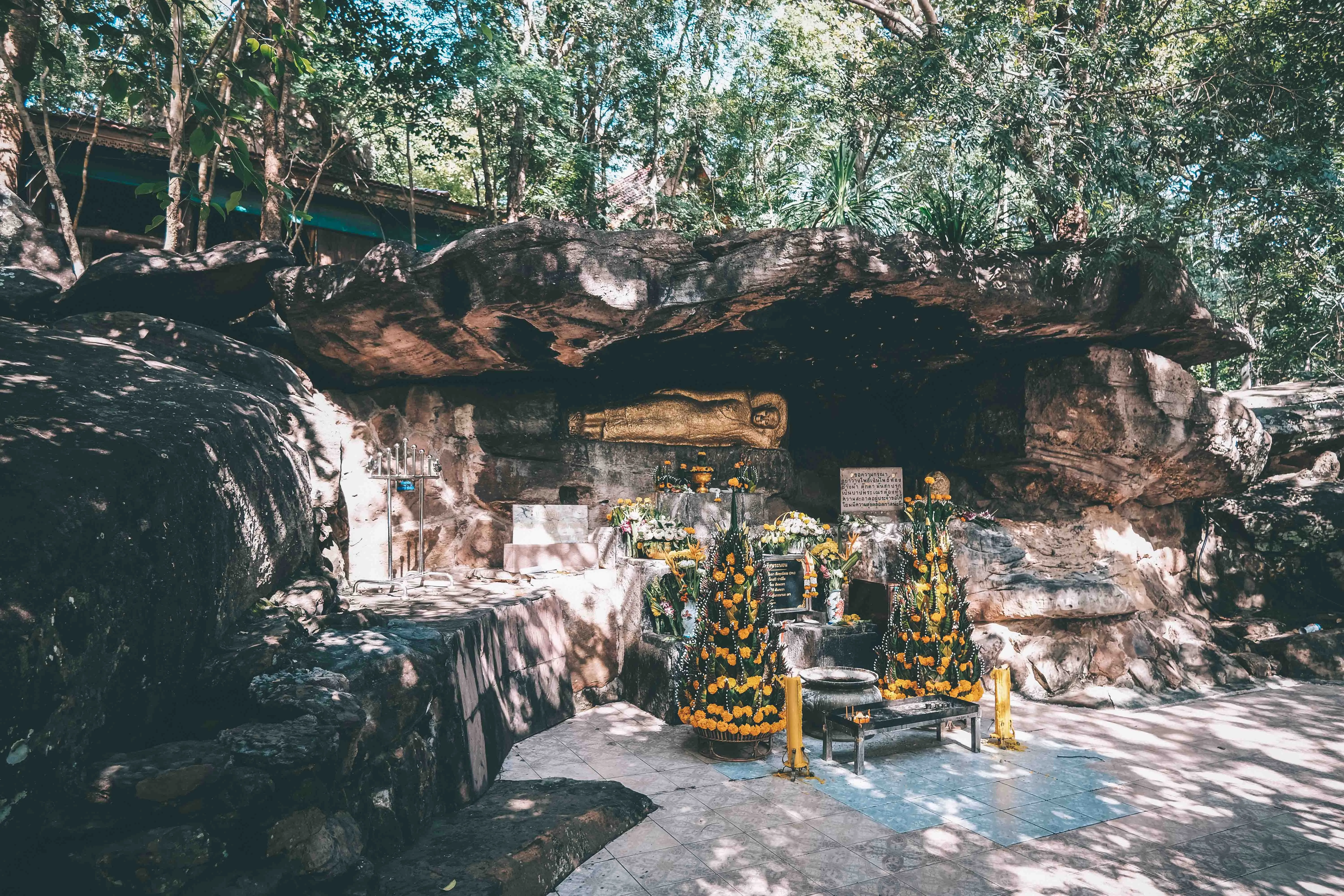 พระพุทธไสยาสน์ แกะสลักบนแผ่นผาอายุนับพันปี ลักษณะตะแคงซ้าย