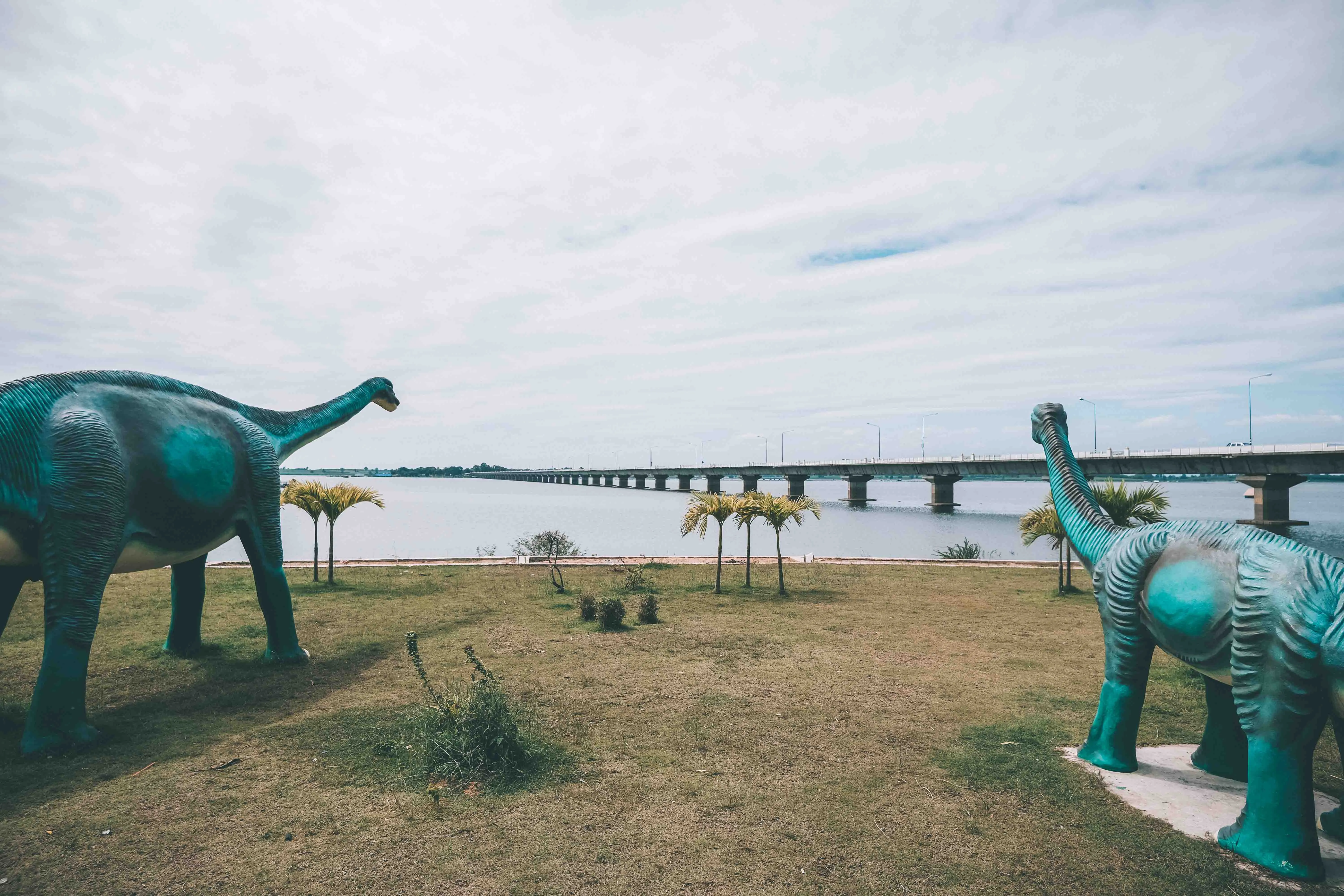 สะพานข้ามน้ำจืด ที่ยาวที่สุดในประเทศไทย มีความยาว 2,040 เมตร ข้ามจากฝั่ง อ.สหัสขันธุ์ ไปฝั่ง อ.หนองกุงศรี บริเวณทั้ง 2 ฝั่งก่อนขึ้นสะพาน จะมีแพอาหารอยู่หลายแพให้เลือกเลย บรรยากาศริมน้ำมองเห็นสะพานเทพสุดายาว ๆ แบบนี้ แนะนำว่ามาช่วงพระอาทิตย์ตกจะสวยมาก ๆ ทั้งวิว และบรรยากาศนั้น ขอบอกเลยว่าสวยงามมาก ๆ เหมาะกับการพักผ่อนสุด ๆ อีกไฮไลท์ที่พลาดไม่ได้เลยคือรูปปั้นไดโนเสาร์ ที่ตั้งอยู่บริเวณสวนสาธารณะปลายสะพาน ให้นักท่องเที่ยวได้ถ่ายรูปกับเหล่าไดโนเสาร์สีเขียว ซิกเนเจอร์ของสะพานข้ามน้ำจืดที่ยาวที่สุดในประเทศแห่งนี้