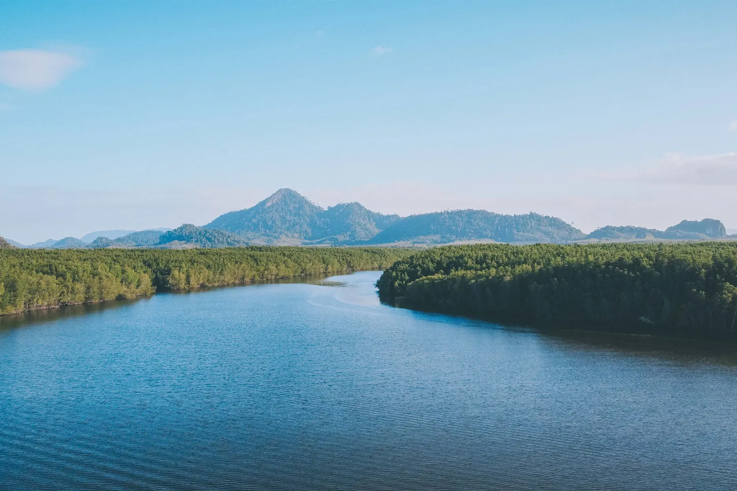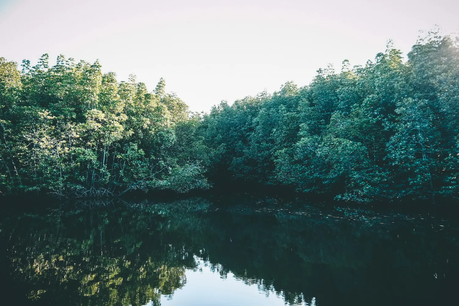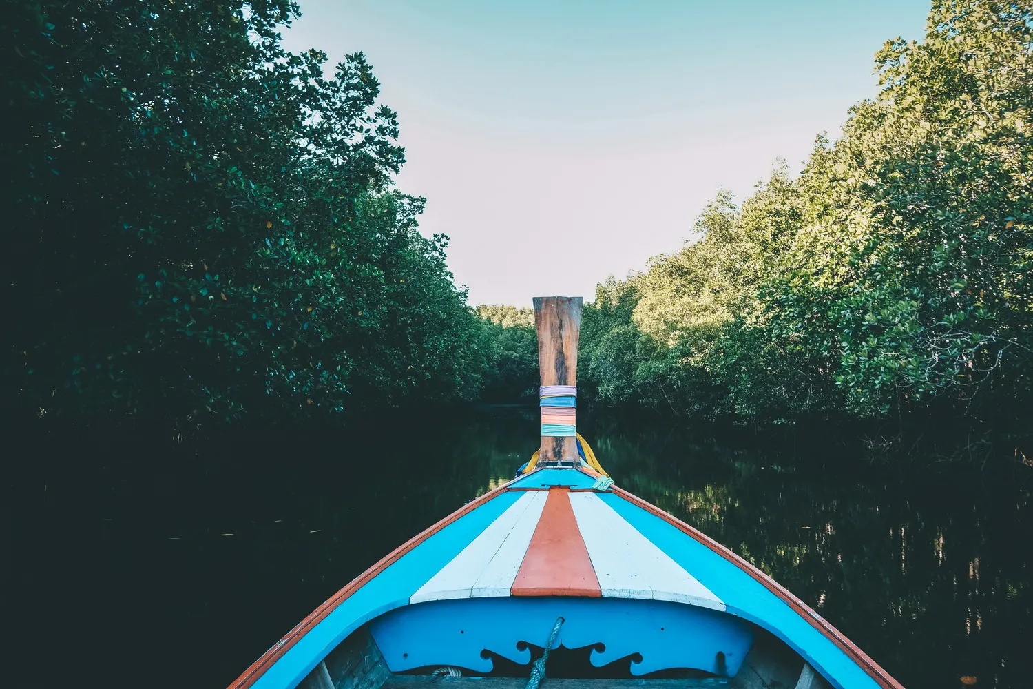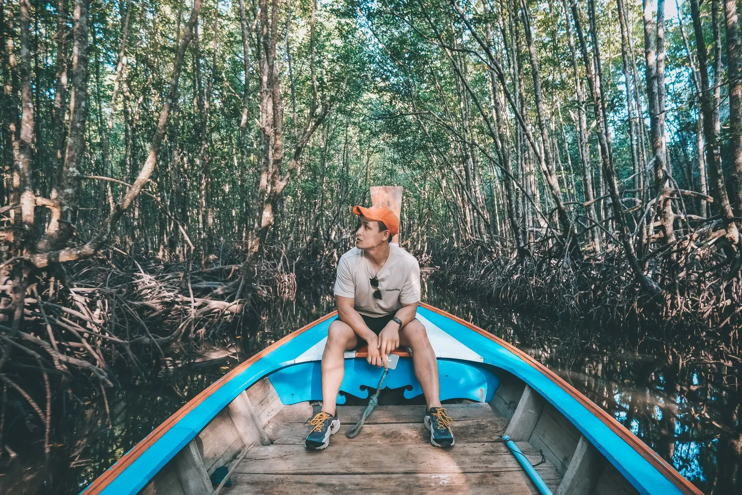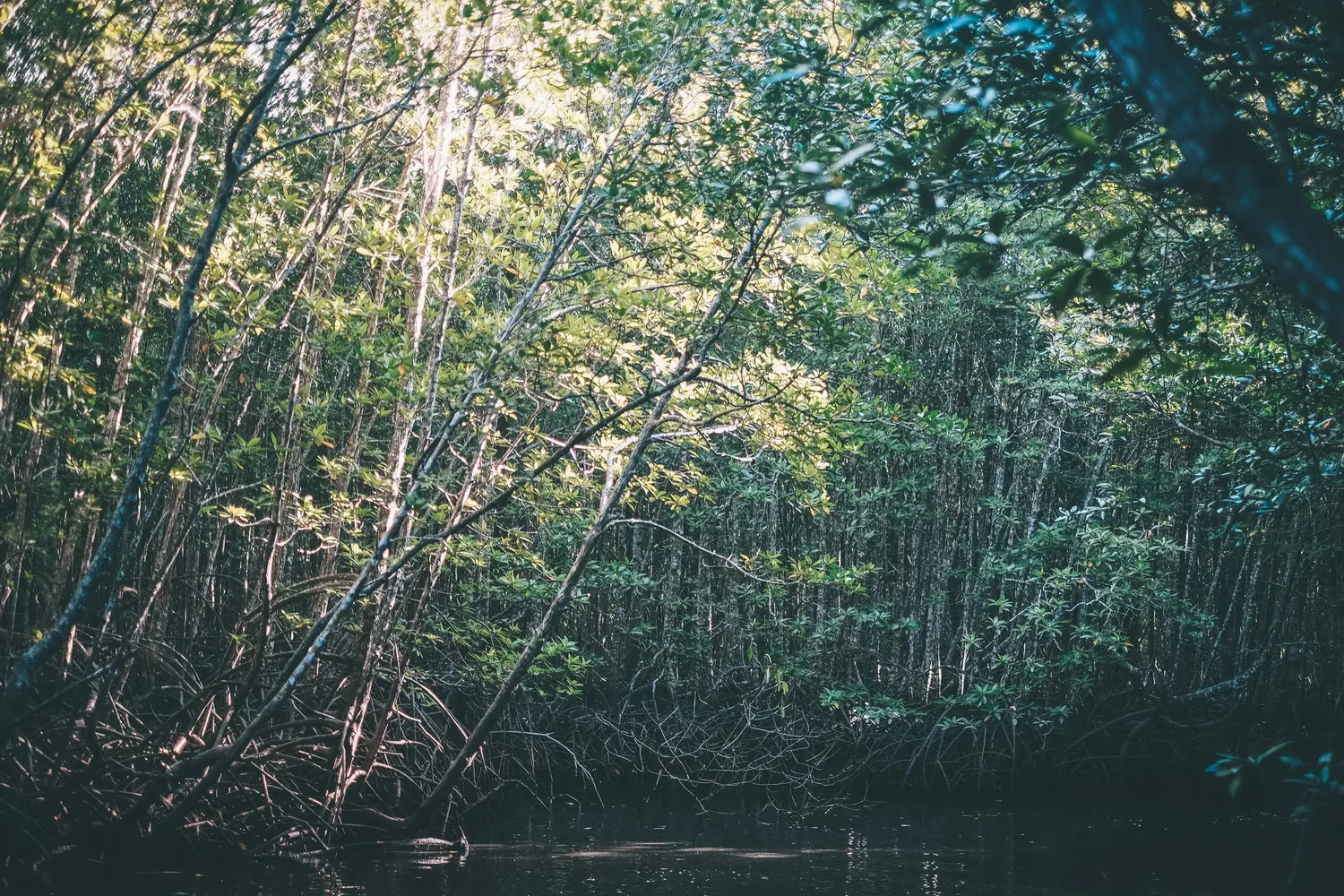 จากจุดแรก เราก็จะล่องเรือผ่านป่าชายเลนบ้านน้ำราบ ซึ่งจะมีพื้นที่ทั้งหมด 3,200 กว่าไร่ 2 ข้างทางเต็มไปด้วยต้นโกงกาง และต้นแสมที่ขึ้นอยู่อย่าหนาแน่น แสดงให้เห็นถึงความอุดมสมบูรณ์ของผืนป่าบริเวณแถบนี้ได้เป็นอย่างดี ช่วงกลางทางเราจะผ่านบริเวณเกาะหัวใจ ถ้าอยากจะเป็นเป็นรูปห้วใจก็ต้องมองจากมุมสูงเท่านั้น