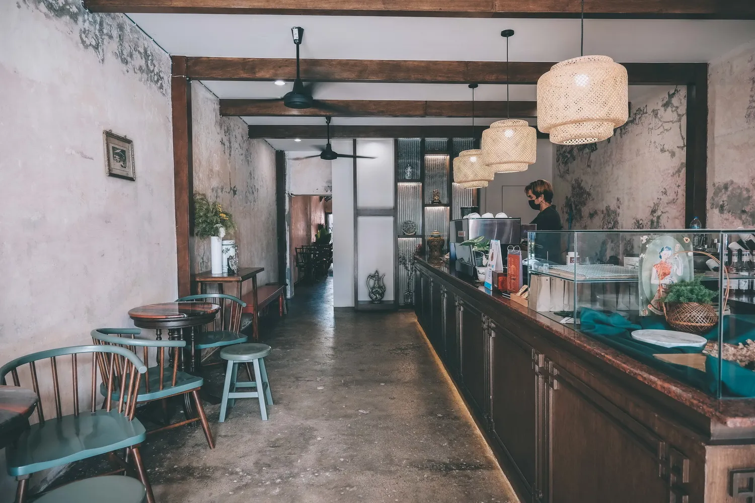 จากอาคารเก่าแบบชิโนโปรตุกิสเก่ากว่า 100 ปี สู่คาเฟ่สไตล์จีนฮ่องกงย้อนยุค แนววินเทจ ในตัวเมืองกันตัง มีครบทั้งเครื่องดื่ม และอาหารจีน ตัวร้านถึงจะตกแต่งสไตล์จีนแต่ก็มีความร่วมสมัย ได้กลิ่นอายความเป็นจีนแบบไม่มีหลุดธีมเลยซักมุม มุมถ่ายรูปโคมไฟโบราณ ซุ้มประตูสวนหลังร้าน เรียกว่าเป็นไฮไลท์ของที่ร้านเลย เป็นร้านที่กาแฟดี เค้กดีมาก ๆ