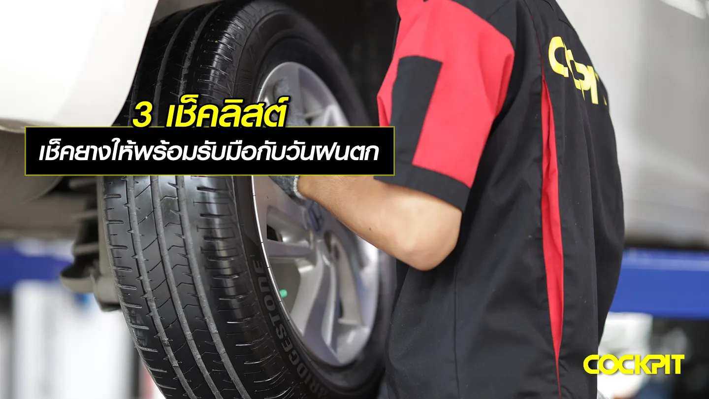 ตรวจเช็คยางทั้ง 4 ล้อ ว่ามีความลึกดอกยางเหลือต่ำกว่า 1.6 มม. หรือไม่ หากความลึกร่องดอกยางเหลือน้อย อาจส่งผลให้ประสิทธิภาพการเบรกของยางบนถนนเปียกลดลงและระยะเบรก จะเพิ่มขึ้น อาจทำให้รถลื่นไถลได้ซึ่งเป็นอันตรายต่อการขับขี่อย่างมาก