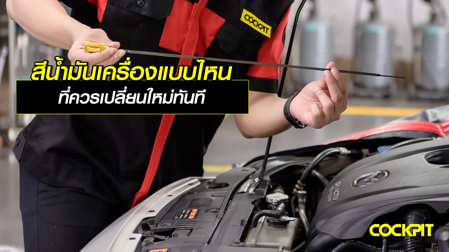 น้ำมันเครื่องใหม่ที่ใช้เติมลงไปในเครื่องยนต์จะมีลักษณะสีโปร่งใส ซึ่งมีหลากหลายโทนสีตั้งแต่สีเหลืองอ่อนไปจนถึงสีน้ำตาลขึ้นอยู่กับสารองค์ประกอบในน้ำมันเครื่อง ดังนั้นน้ำมันเครื่องที่เติมลงในเครื่องยนต์ เมื่อถูกใช้งานก็จะมีสีที่เปลี่ยนไปตามระยะการใช้งาน น้ำมันเครื่องที่มีสีดังนี้ กำลังบ่งบอกว่าถึงเวลาเปลี่ยนน้ำมันเครื่องใหม่แล้ว
