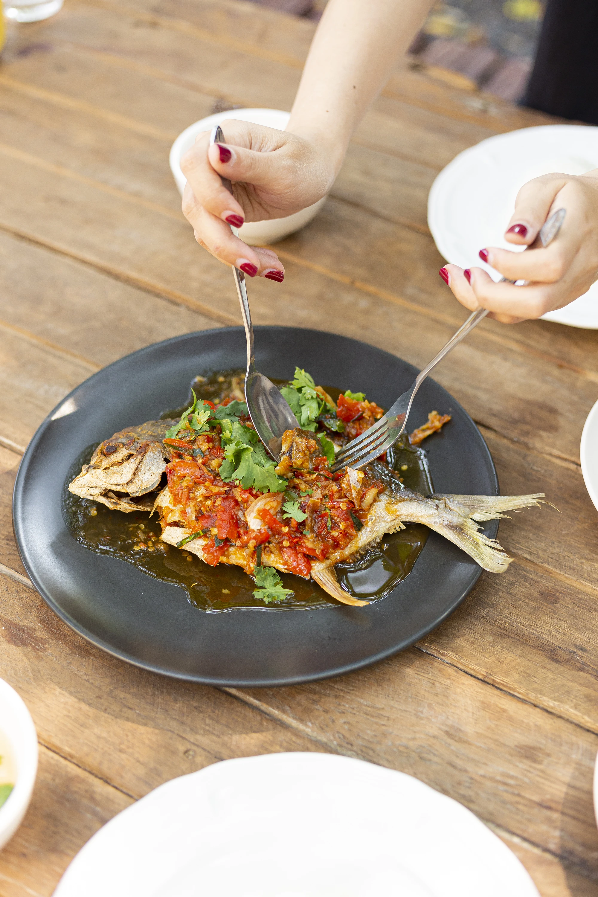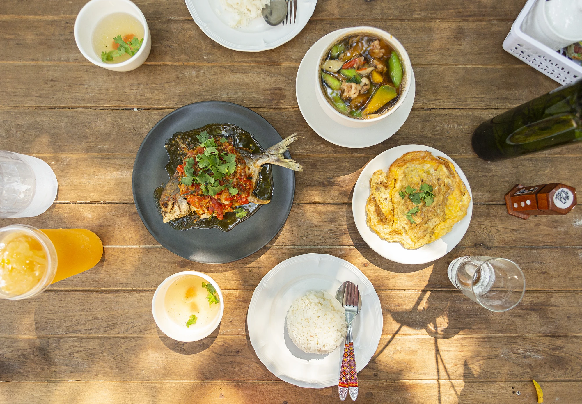 เมนูอาหารน่าสนใจหลายอย่าง ทั้งแกงเลียงกุ้งสดที่หากินไม่ได้ง่ายๆ ปลาราดพริก แกงส้มชะอมทอดปลาสลิดแดดเดียว และอาหารไทยอีกหลายๆ อย่าง นอกจากนี้ยังมีน้ำผลไม้สดปั่นแสนสดชื่นที่แนะนำให้สั่งมาดื่มคู่กัน