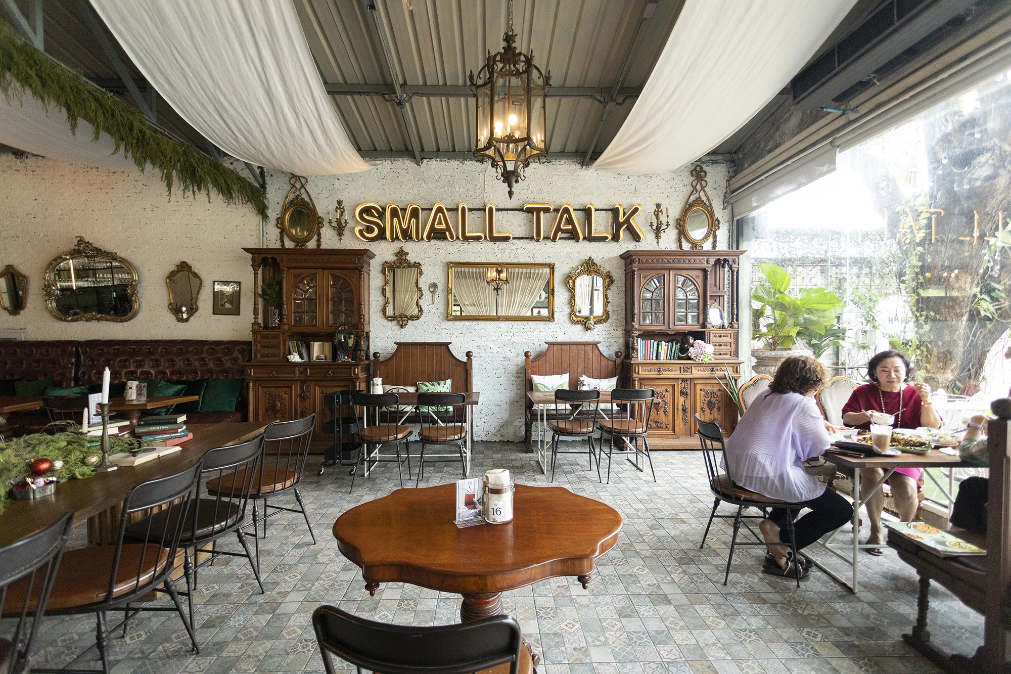 ร้านดัดแปลงมาจากอู่ซ่อมรถโดยเจ้าของที่ชื่นชอบการแต่งบ้านเป็นพิเศษ Small Talk Cafe จึงเป็นบ้านอีกหลังที่ภายในตกแต่งสไตล์วินเทจผสมลอฟต์ด้วยเฟอร์นิเจอร์ไม้ และของตกแต่งอย่างหนังสือเก่าและรูปปั้น ที่ผ่านการคัดเลือกอย่างพิถีพิถัน หน้าเคาเตอร์มีคำคมของ Julia Child ครูสอนทำอาหารชื่อดังที่บอกว่า “People who love to eat are always the best people.”