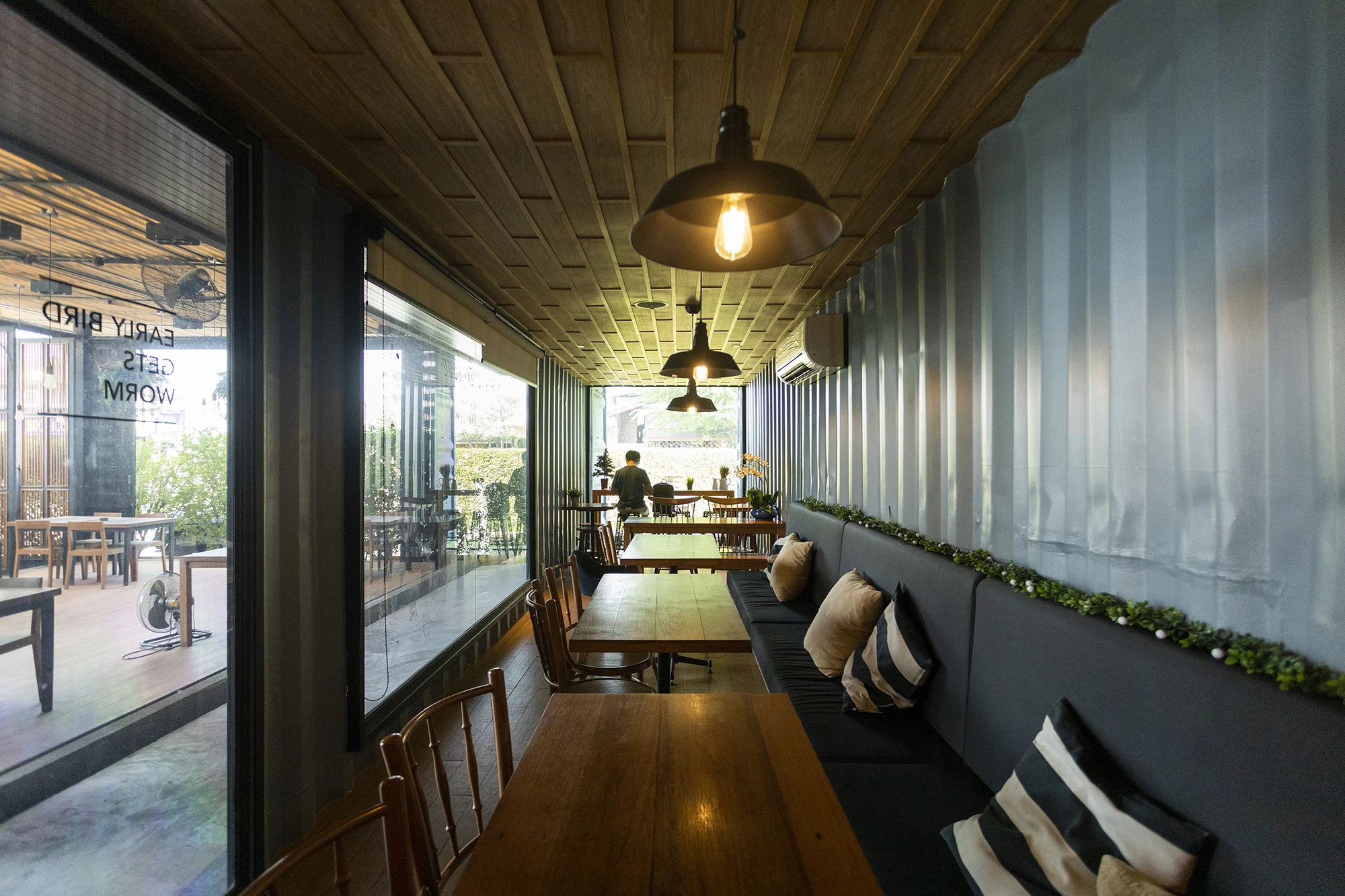 Early Bird Coffee & Dessert bar คือร้านคาเฟ่ที่ดัดแปลงมาจากตู้คอนเทนเนอร์ต่อกันเป็นรูปตัวแอล แถมยังมีที่นั่งนอกร้านขนาดใหญ่สำหรับคนที่ชอบอากาศธรรมชาติ