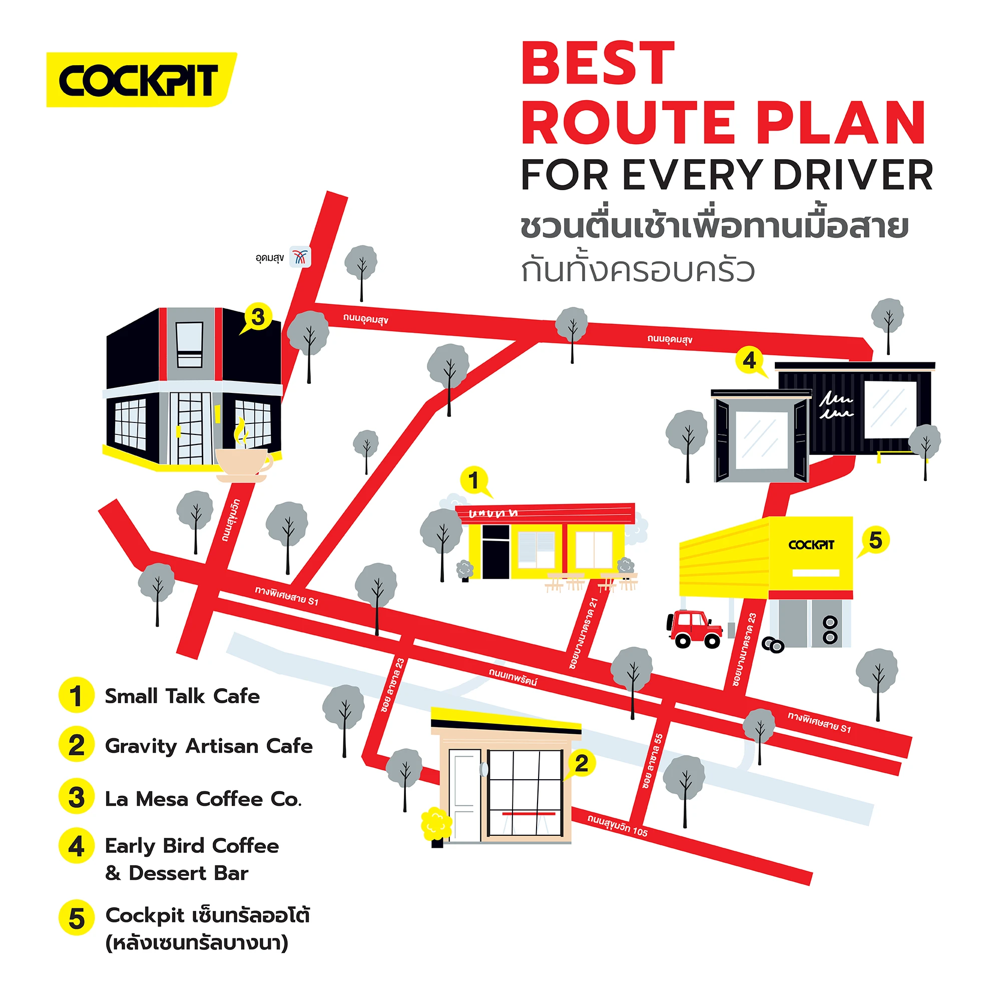 แต่ก่อนจะพาครอบครัวหรือคนรักไปทานมื้อสาย อย่าลืมแบ่งเวลาวันหยุดเพื่อแวะไปตรวจเช็คสภาพรถที่ Cockpit เซ็นทรัลออโต้ (หลังเซนทรัลบางนา) พร้อมโปรโมชั่นพิเศษท้ายบทความนี้
