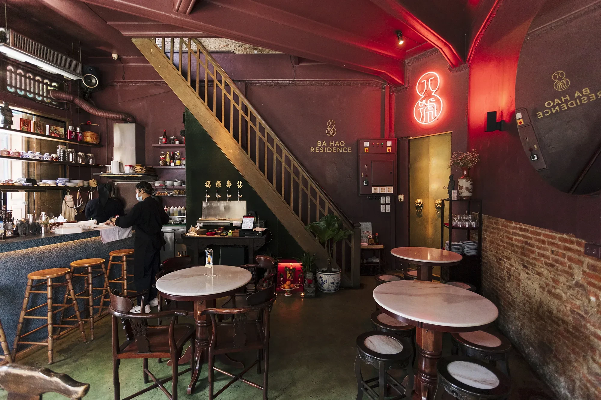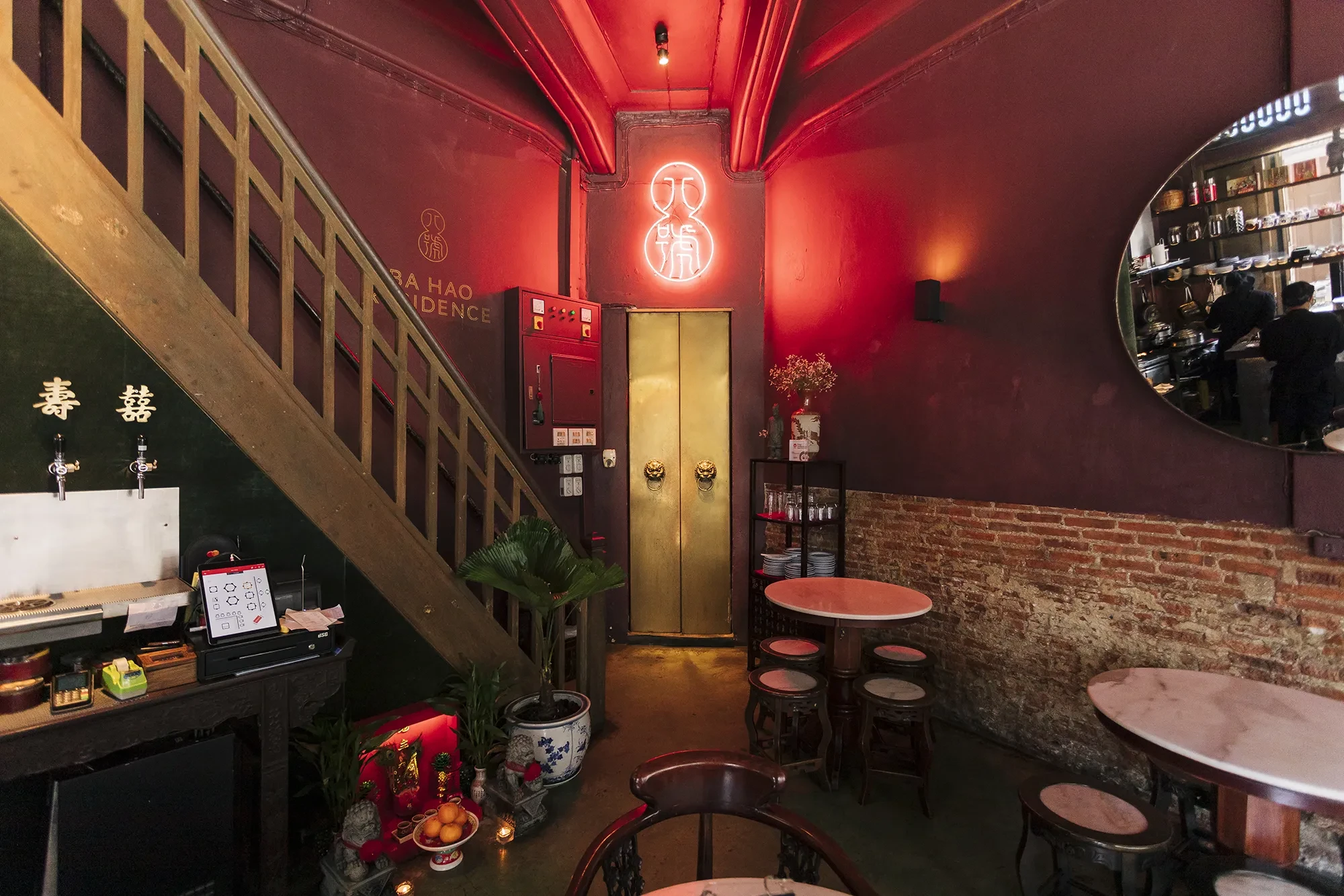 Ba hao 八號 ตั้งอยู่ในอาคารสี่ชั้นที่มีอายุมามากกว่า 70 ปีแล้ว นอกจากจะเป็นบ้านเลขที่ 8 ชื่อร้านยังแปลว่าเลขแปด ซึ่งเป็นเลขมงคลในวัฒนธรรมจีน เข้าไปด้านในจะเจอพผนังสีชมพูเข้มอมม่วง ตกแต่งด้วยเฟอร์นิเจอร์สไตล์จีนทั้งเก้าอี้ โต๊ะ บาร์ ของตกแต่งอย่างตู้ แจกัน โคมไฟ แม้กระทั่งสีของหลอดไฟก็ตาม