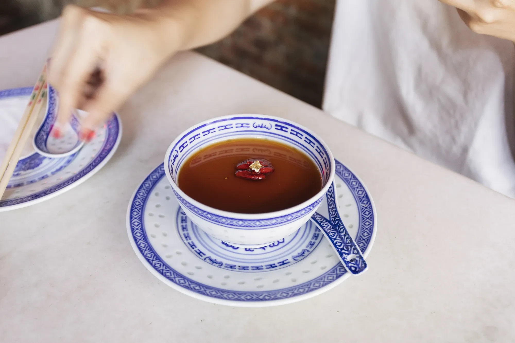 เมื่อมาถึงที่นอกจากจะสั่งน้ำดื่มแก้กระหาย ทางร้านมีเมนูอาหารจีนรสชาติเยี่ยมอย่างเกี๊ยวเป็ดที่สั่งมาทานคู่หมั่นโถว ซุปเสฉวนรสชาติกลมกล่อม หรือใครแค่อยากสั่งเมนูทานเล่นก็มี Xiao Patongko ปลาท่องโก๋ทอดกรอบคั่วพริกเกลือ ไว้ทานแกล้มเครื่องดื่ม ปิดท้ายด้วยของหวานพุดดิ้งที่มีให้เลือกทั้งโกจิเบอร์รี่ ชานมไข่มุก และงาดำ