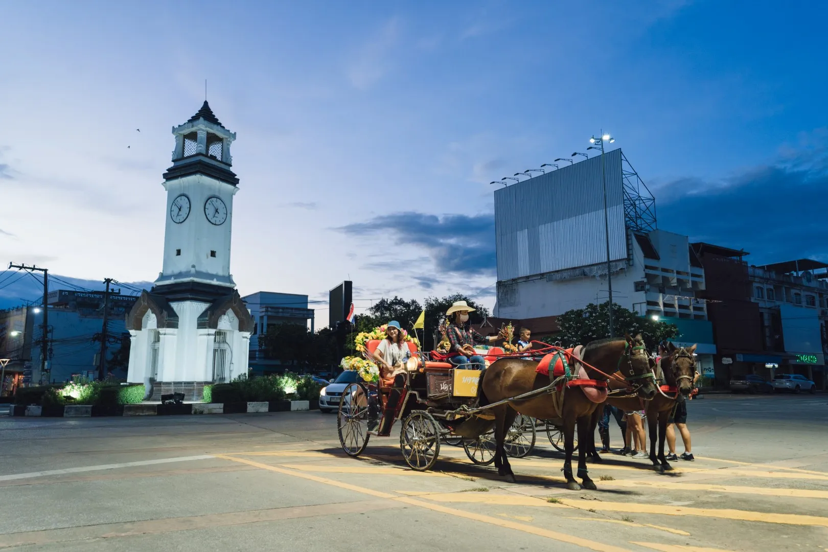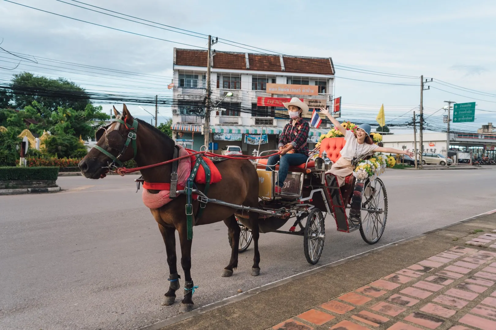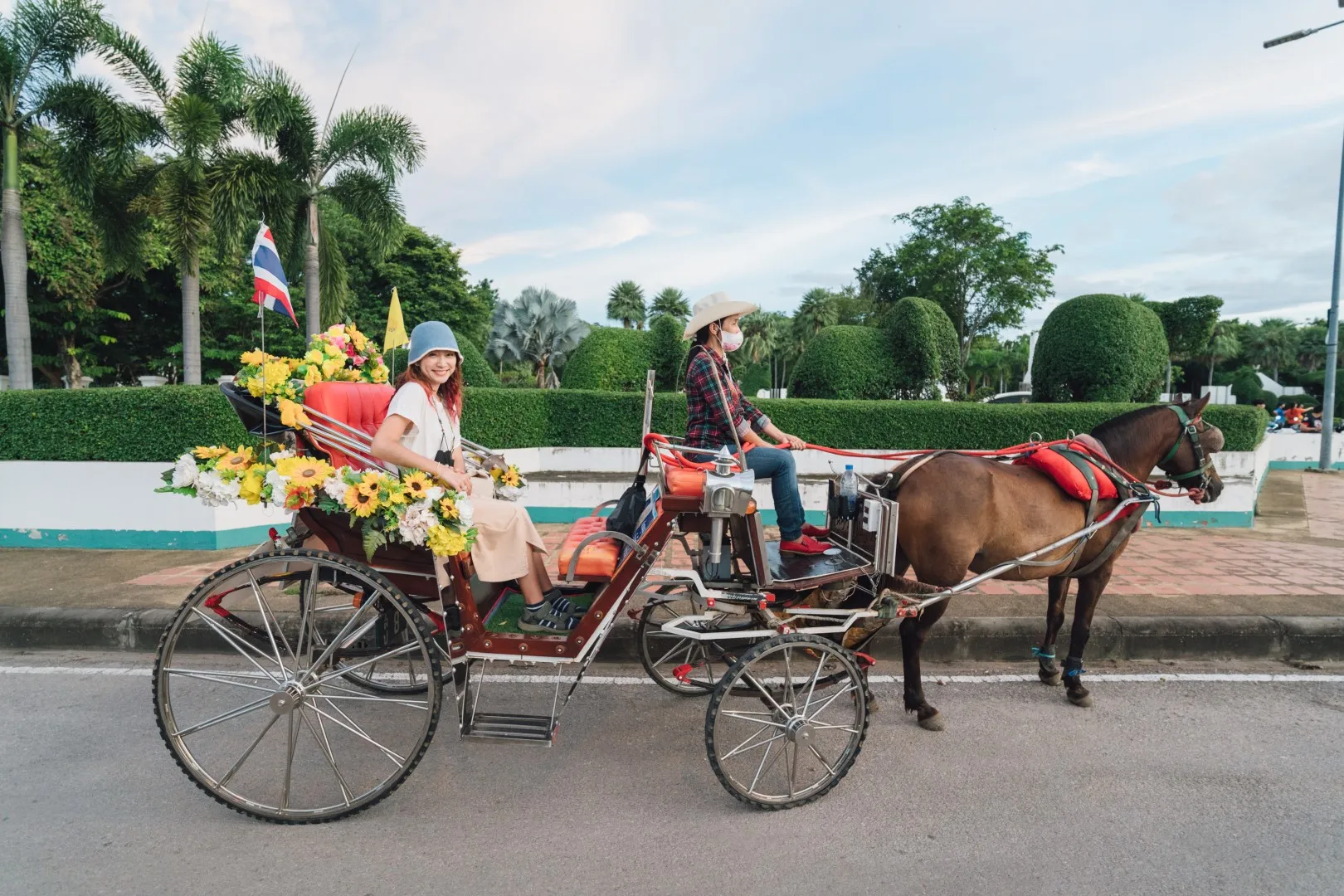 มาถึงลำปางทั้งทีก็ไม่ควรพลาดที่จะนั่งรถม้าชมเมืองลำปางแบบชิล ๆ ลำปางน่าจะเป็นจังหวัดเดียวในประเทศไทย ที่ยังคงมีรถม้าให้บริการในระยะทางใกล้ ๆ ภายในตัวเมืองอยู่ ถือว่าเป็นเอกลักษณ์ภาพจำของการมาเที่ยวลำปางเลย แสดงให้เห็นถึงอัตลักษณ์ของท้องถิ่นได้อย่างแท้จริง ถึงแม้ในปัจจุบันไม่ได้ใช้รถม้าเป็นยานพาหนะหลักแล้ว แต่ก็ยังใช้สำหรับการท่องเที่ยวชมรอบเมือง สำหรับการเที่ยวชมรอบเมืองด้วยรถม้า จะมีราคา และจุดขึ้นรถม้าดังต่อไปนี้ โดยสมาคมรถม้าลำปางกำหนดค่าโดยสารแน่นอนไว้ 3 อัตรา คือ รอบเมืองเล็ก 200 บาท / รอบเมืองใหญ่ 300 บาท / เหมาชั่วโมงละ 400 บาท และคิวจอดรถม้าจะอยู่ที่ หน้าศาลากลางหลังเก่า บริการระหว่างเวลา 6.00 - 16.00 น. หน้าโรงแรมทิพย์ช้างลำปาง โรงแรมเวียงลคอร และโรงแรมลำปางเวียงทอง บริการระหว่างเวลา 6.00 - 23.00 น. นอกจากนี้ยังมีคิวเล็ก ๆ อยู่หน้าโรงแรมบางโรงแรม และตามสถานที่ท่องเที่ยวในลำปาง เช่น วัดพระธาตุลำปางหลวง