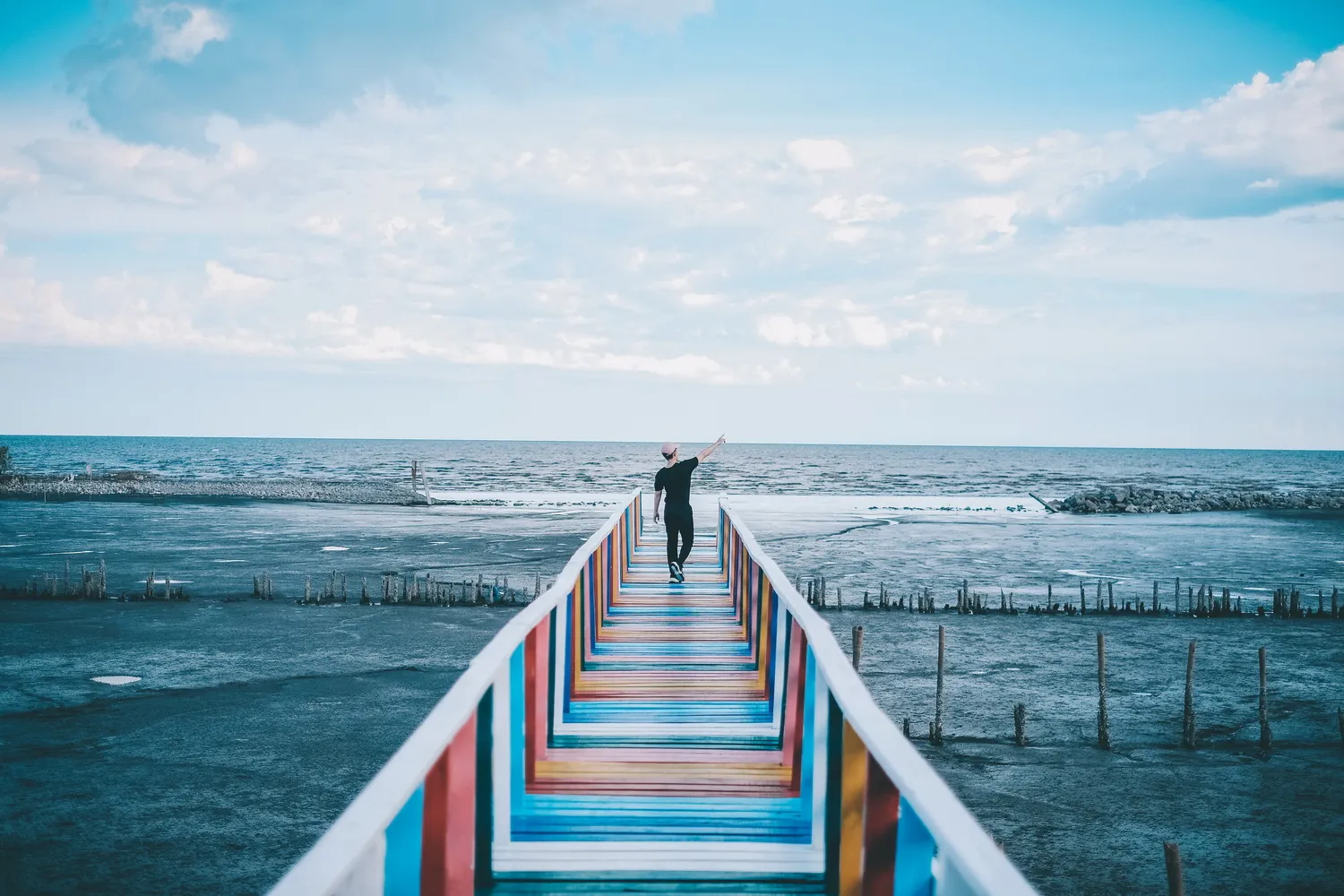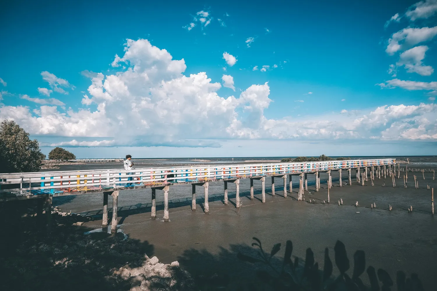 สะพานไม้ชมวิวริมทะเลที่สีสันคัลเลอร์ฟูลมาก ๆ อีกหนึ่งแลนด์มาร์คของสมุทรสาคร สะพานไม้สายรุ้งที่ทอดยาวยื่นสู่ชายทะเล บวกกับวิวทิวทัศน์โดยรอบของป่าชายเลน และต้นโกงกางสีเขียว พร้อมด้วยลมทะเลพัดโชย ก็ถือว่าเป็นบรรยากาศริมทะเลที่อิ่มเอมอยู่ไม่น้อยเหมือนกัน เมื่อเดินไปยังปลายสะพานเราก็ยิ่งเห็นวิวทะเลได้แบบสุดลูกหูลูกตาเลย ถ้ามาช่วงเย็น ๆ อากาศจะดีมาก ๆ แถมยังได้ดูพระอาทิตย์ตกดินอีกด้วย เป็นความชิลริมทะเลที่ไม่ไกลจากกรุงเทพเลย อีกหนึ่งโลเคชั่นถ่ายรูปที่ไม่ควรพลาด