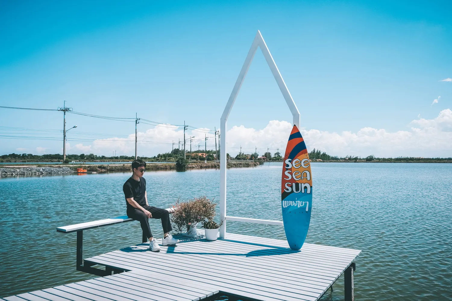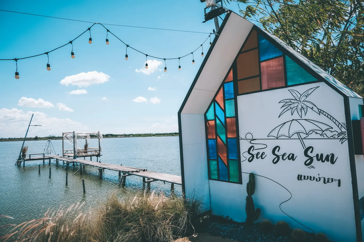 ร้านอาหาร และคาเฟ่ บรรยากาศชิล ๆ ริมน้ำ นั่งมองท้องฟ้าสวย ๆ กับพื้นน้ำแบบกว้าง ๆ มันดีต่อใจมาก ๆ นั่งรับลมเย็น ๆ ที่ร้านมีเสิร์ฟทั้งอาหาร เครื่องดื่ม แถมราคาก็ไม่แพงอีกต่างหาก เป็นอีกหนึ่งร้านมุมดี ๆ ที่ควรแวะมาเช็คอิน ชื่อร้านเค้าก็มีที่มาที่ไปนะ See = ให้คุณเห็นอะไรมากกว่าที่เคยเห็น Sea =ได้บรรยากาศเหมือนนั่งอยู่ริมทะเล ด้วยผืนน้ำกว้าง Sun = กลางวันท้องฟ้าสดใสกับก้อนเมฆสวย ตอนเย็น พระอาทิตย์ตก สวยงาม ส่วน แบบง่าย ๆ = ความสุขที่มีง่าย ๆ รอบ ๆ ตัวเรา
