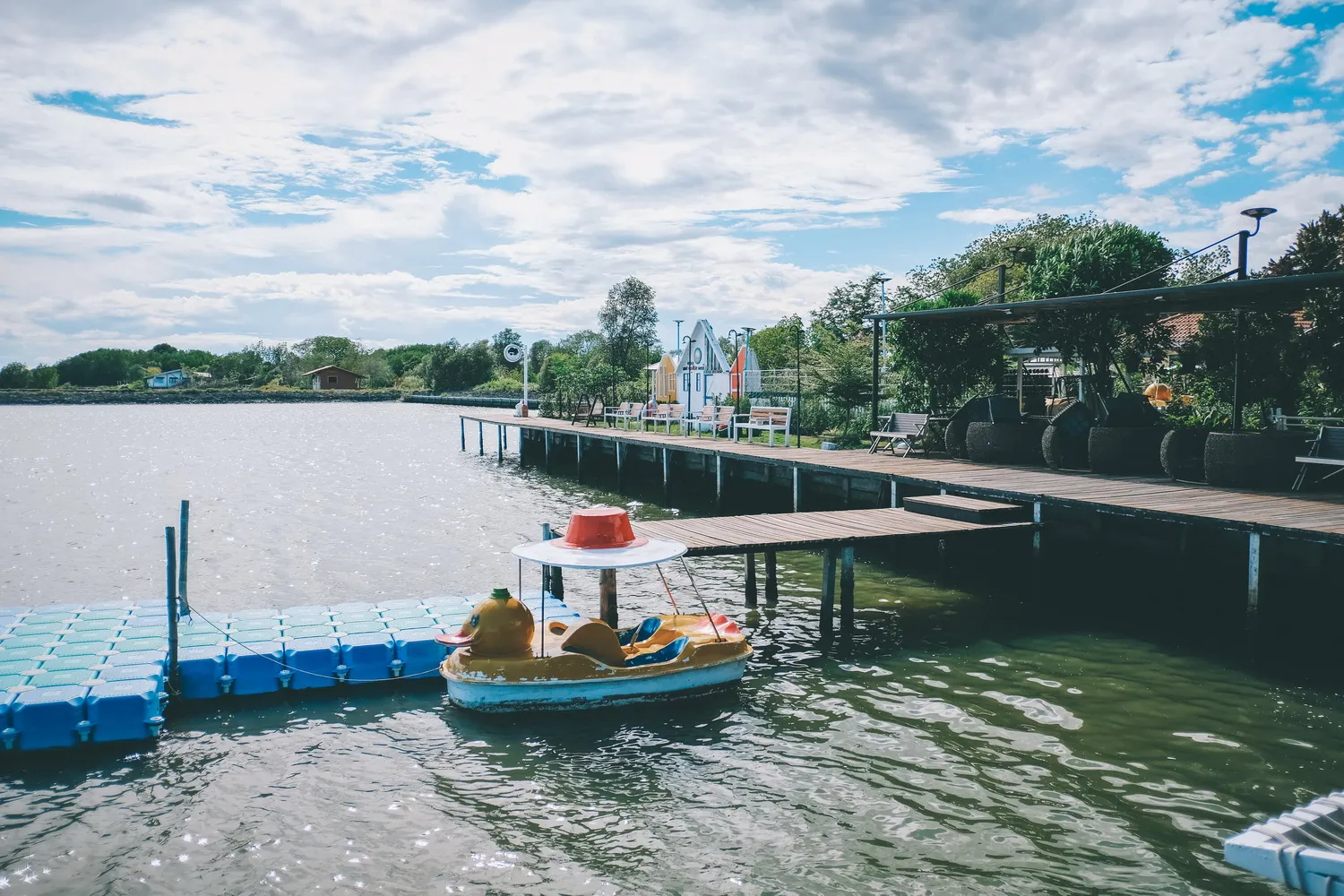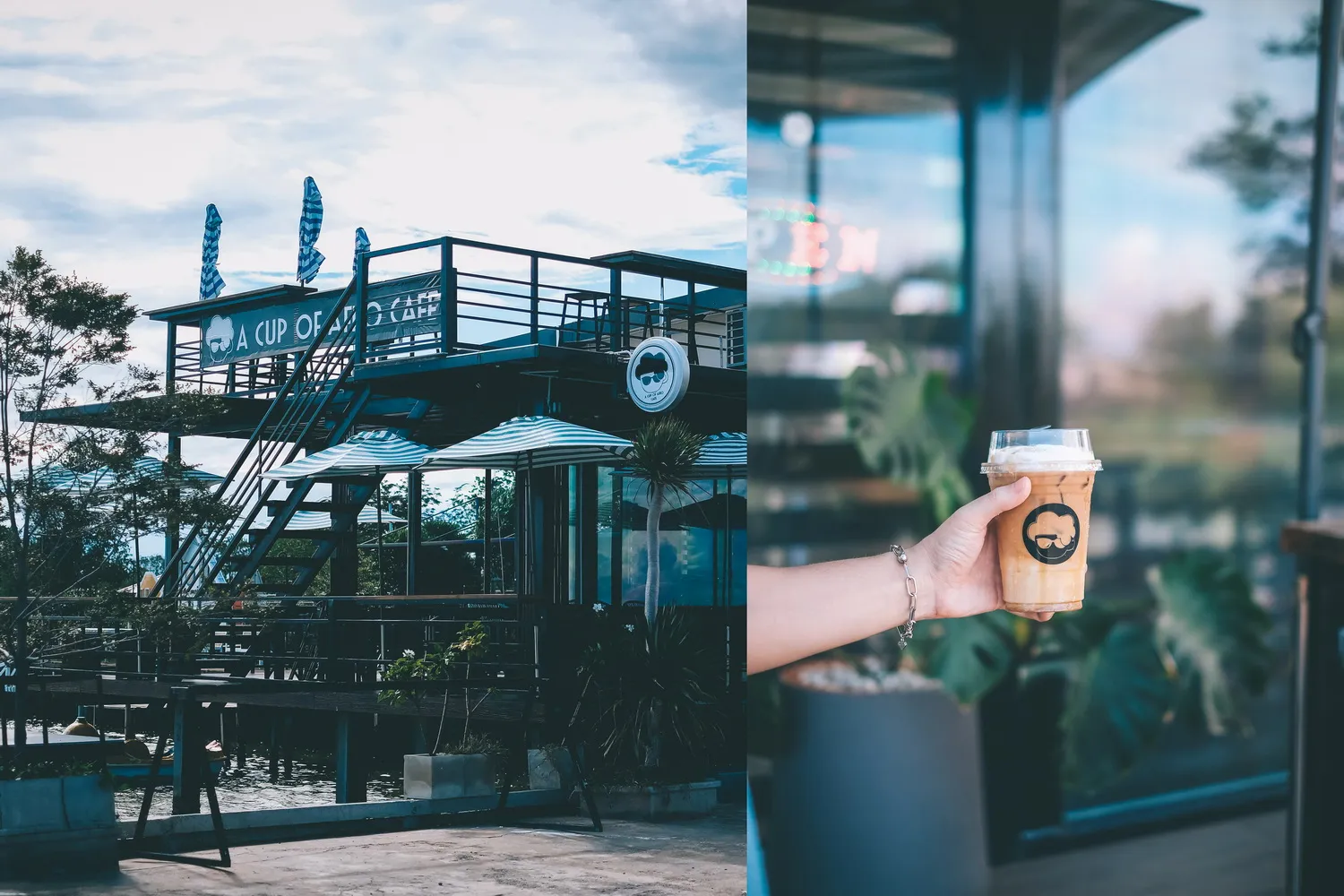 คาเฟ่บรรายากาศสุดฟินริมน้ำ ย่านบางขุนเทียน-ชายทะเล ร้านมีพื้นที่พอสมควรเลย มีให้บริการทั้งโซนห้องแอร์ และแบบเอ้าท์ดอร์รับลมเย็น ๆ สำหรับมุมไฮไลท์ต้องยกให้ที่สะพานไม้ที่ยื่นไปกลางน้ำ ให้ได้สัมผัสกับบรรยากาศริมน้ำอย่างเต็มอิ่ม แนะนำให้มาสักช่วงเย็น ๆ จะได้ฟินกับแสงพระอาทิตย์ตกสุดโรแมนติก นอกจากจะได้จิบกาแฟ กินขนมแล้ว ก็สามารถไปปั่นเรือเป็ดชิล ๆ ก็ได้ฟีลสุด ๆ แถมมุมถ่ายรูปก็น่ารักไม่เบาเลย