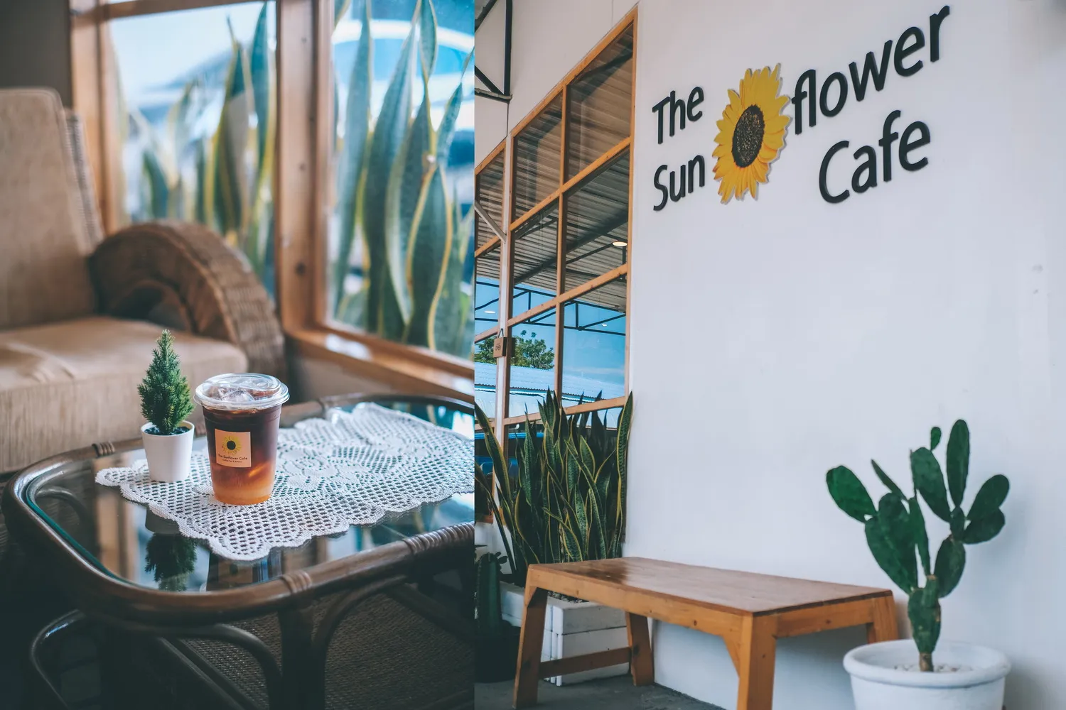 คาเฟ่ย่านพันท้ายนรสิงห์ บรรยากาศอบอุ๊นอบอุ่น โทนขาว น้ำตาล เน้นตกแต่งด้วยเฟอร์นิเจอร์หวายให้อารมณ์เหมือนมานั่งกินกาแฟบ้านญาติ เน้นสบาย ๆ พร้อมดอกทานตะวันที่วางตกแต่งไว้ทุกมุมของร้าน เหมือนอยู่ทุ่งทานตะวันเลยแกเอ้ย มีเพลงพราะ ๆ ให้ฟังเพลิน ๆ เหมาะกับวันสบาย ๆ ส่วนเมนูแนะนำก็จะเป็น Yuii Cha Signature จัดเต็มด้วย Brown Sugar Jelly, Brown Sugar Syrup, Brown Sugar Bubble รสชาติกลมกล่อม ไข่มุกหนุบหนับ ส่วนพวกเบเกอรี่ก็มีให้เลือกหลากหลาย รสชาติไม่หวานเลี่ยนเกินไป แถมราคาก็ไม่แพงด้วย
