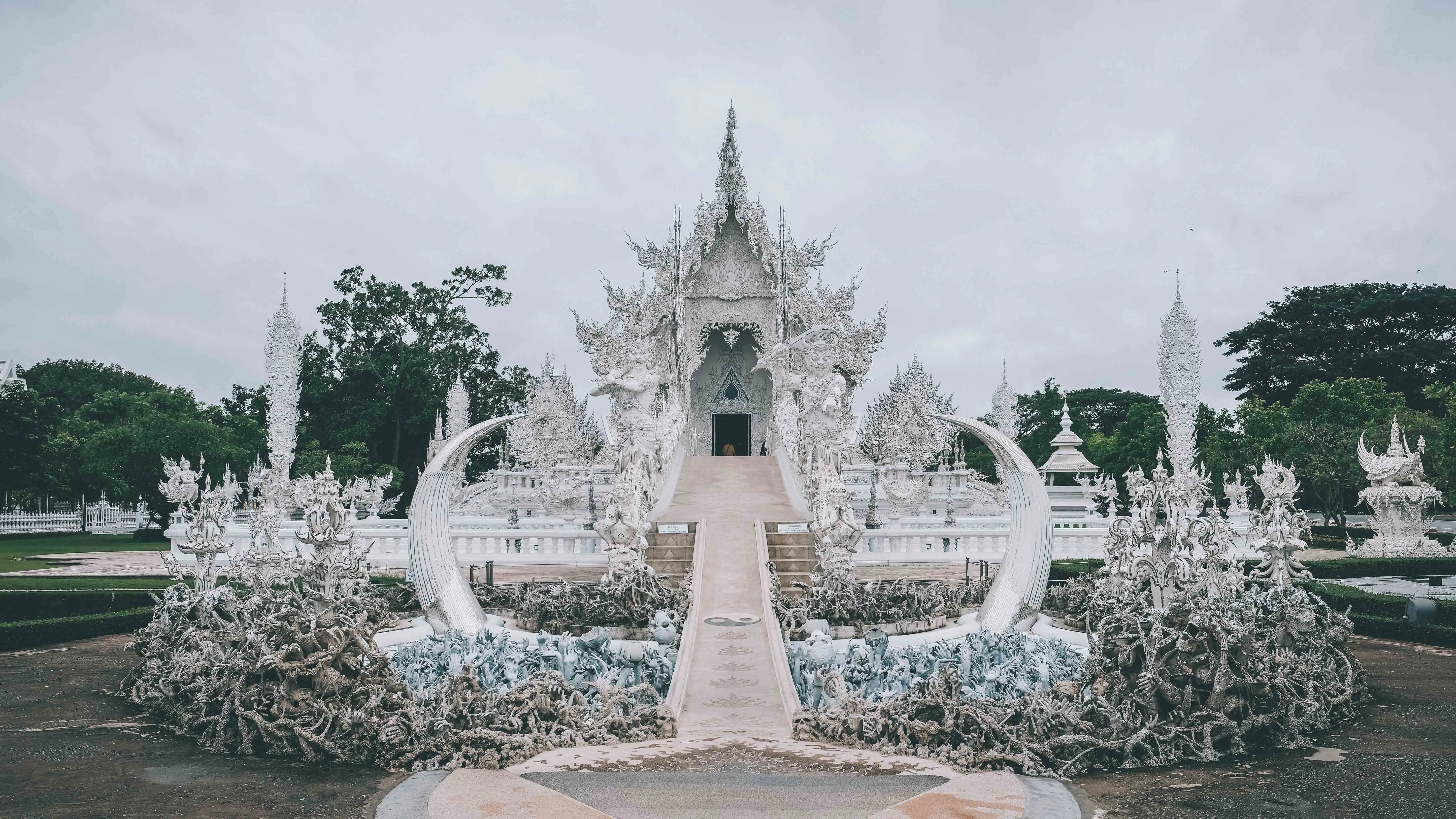 ถือว่าเป็นวัดที่ฮิตมาก ๆ ที่สุดในประเทศไทยเลยก็ว่าได้ เป็นวัดที่มีความสวยงามมากในแง่ของงานศิลปะ ลักษณะเด่นของวัดร่องขุ่นอยู่ที่พระอุโบสถสีขาว ประดับด้วยกระจกแวววาว และลวดลายต่างๆ ซึ่งเป็นงานศิลปะที่ไม่เหมือนที่ไหน ที่ด้านหน้าพระอุโบสถจะมีสะพานที่สื่อถึงการเดินข้ามวัฏสงสารมุ่งสู่พุทธภูมิ และก่อนขึ้นสะพานจะมีครึ่งวงกลมเล็กซึ่งหมายถึงโลกมนุษย์ มีงานศิลปะเป็นรูปมือโผล่มาจากพื้นดิน เป็นสถานที่เที่ยวยอดนิยมของนักท่องเที่ยว ไม่ว่าจะเป็นคนไทย หรือชาวต่างชาติ