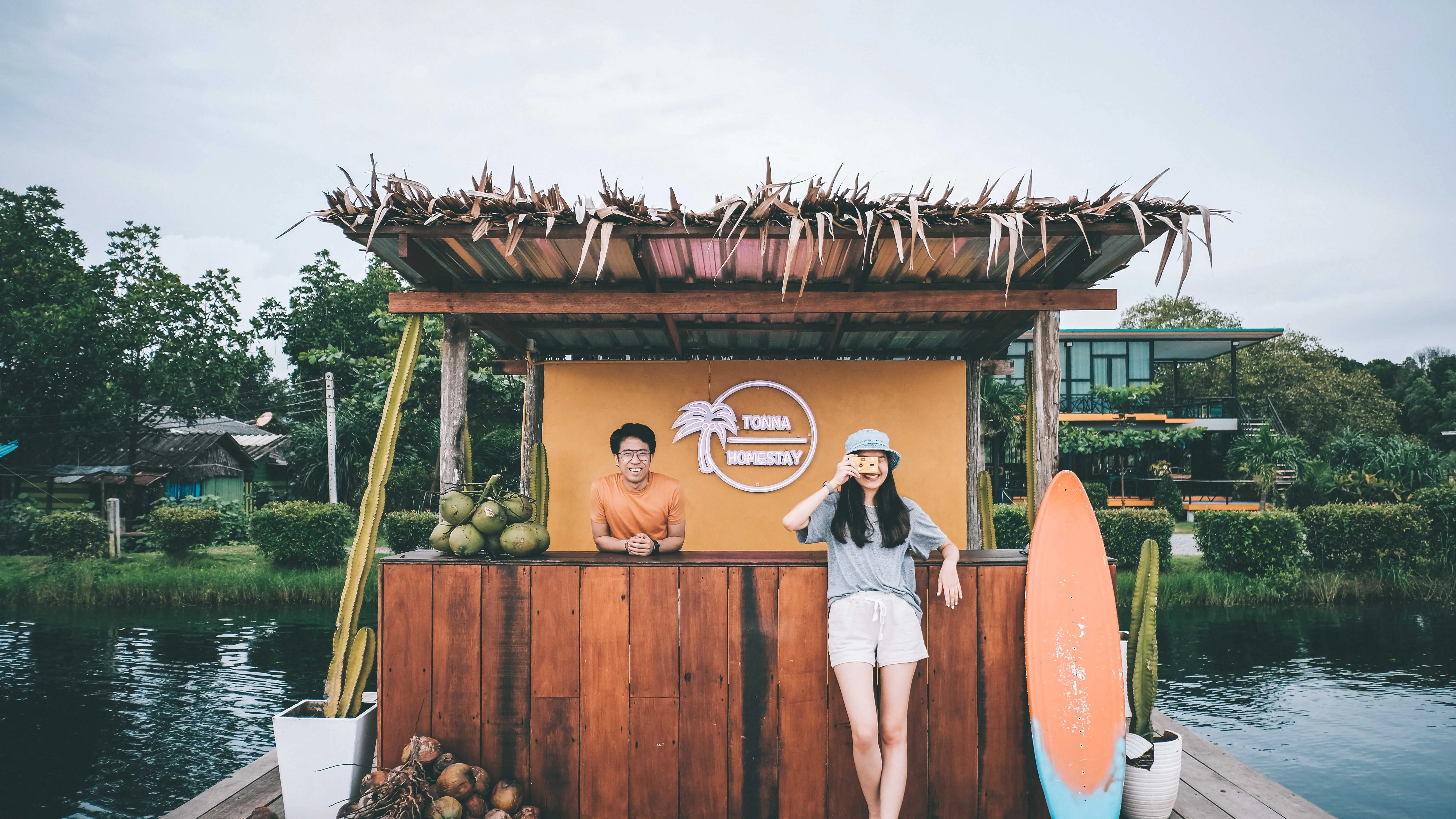 สำหรับการมาพักโฮมสเตย์ เราสามารถเช็คอินได้ตั้งแต่เวลา 12.00 - 14.00 น. เช็คอินเสร็จก็ พร้อมวกินข้าวเที่ยงได้เลย ส่วนมากจะแพ็กเกจ 2 วัน 1 คืน ที่รวมอาหารให้ 3 มื้อแล้ว (เที่ยง / เย็น / เช้า) พร้อมกิจกรรมล่องแพเปียก ดูเหยี่ยว บรรยากาศที่พัก และพื้นที่ใช้สอยโดยรวมกว้างขวางดีมาก เรียบง่ายสบาย ๆ ห้องพักเรียงรายอยู่รอบ ๆ บ่อน้ำ ส่วนกลาง ทุกห้องสามารถออกมานั่งชิลริมน้ำได้แบบสบาย ๆ บางห้องก็จะมีเปลตาข่ายอยู่ด้านหน้าห้องเลย