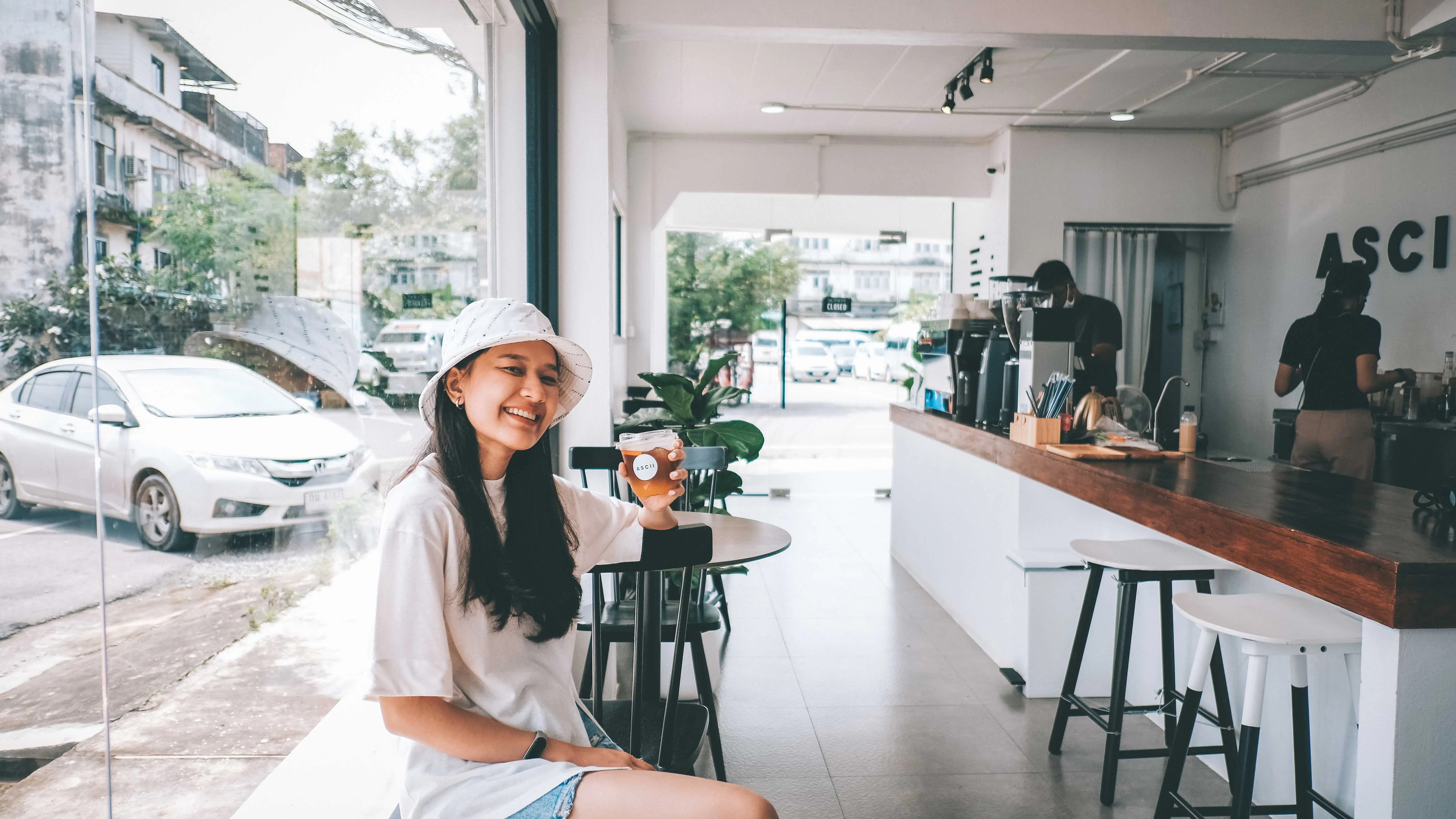 แอสกี คอฟฟี่ คาเฟ่สไลต์มินิมอล คลุมโทนขาว-ดำ อีกร้านน่านั่งที่คอกาแฟห้ามพลาด เพราะในส่วนของกาแฟก็คือดีย์มากพี่จ๋า มีเมล็ดกาแฟให้เลือกด้วย หน้าร้านก็มีมุมถ่ายรูปอยู่เด้อ จัดไปสัก 1 กรุบ พิกัดหาไม่ยาก หลัง บขส.จันทบุรี
