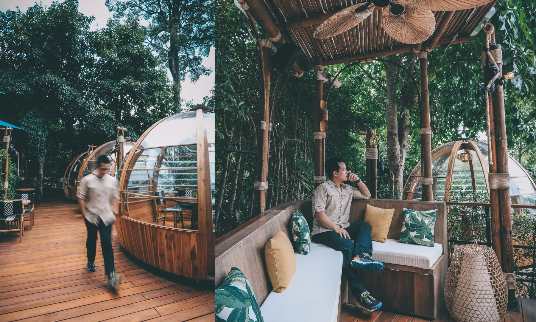 แนะนำโซน Monkeys Nest zone เลย ปังไม่ไหว นั่งกินอาหารในโดมใส ติดแอร์เย็นฉ่ำ แบบคนเก๋ ๆ ท่ามกลางธรรมชาติ หรือจะแบบโอเพนแอร์ นั่งจิบชาชิล ๆ ที่รังนก ชมธรรมชาติ แบบส่วนตั๊วส่วนตัว แถมยังสั่งอาหารจาก Naughty Nuri's Phuket มาทานที่โซนนี้ได้อีกด้วย โอ้ยมันเริ่ดแท้