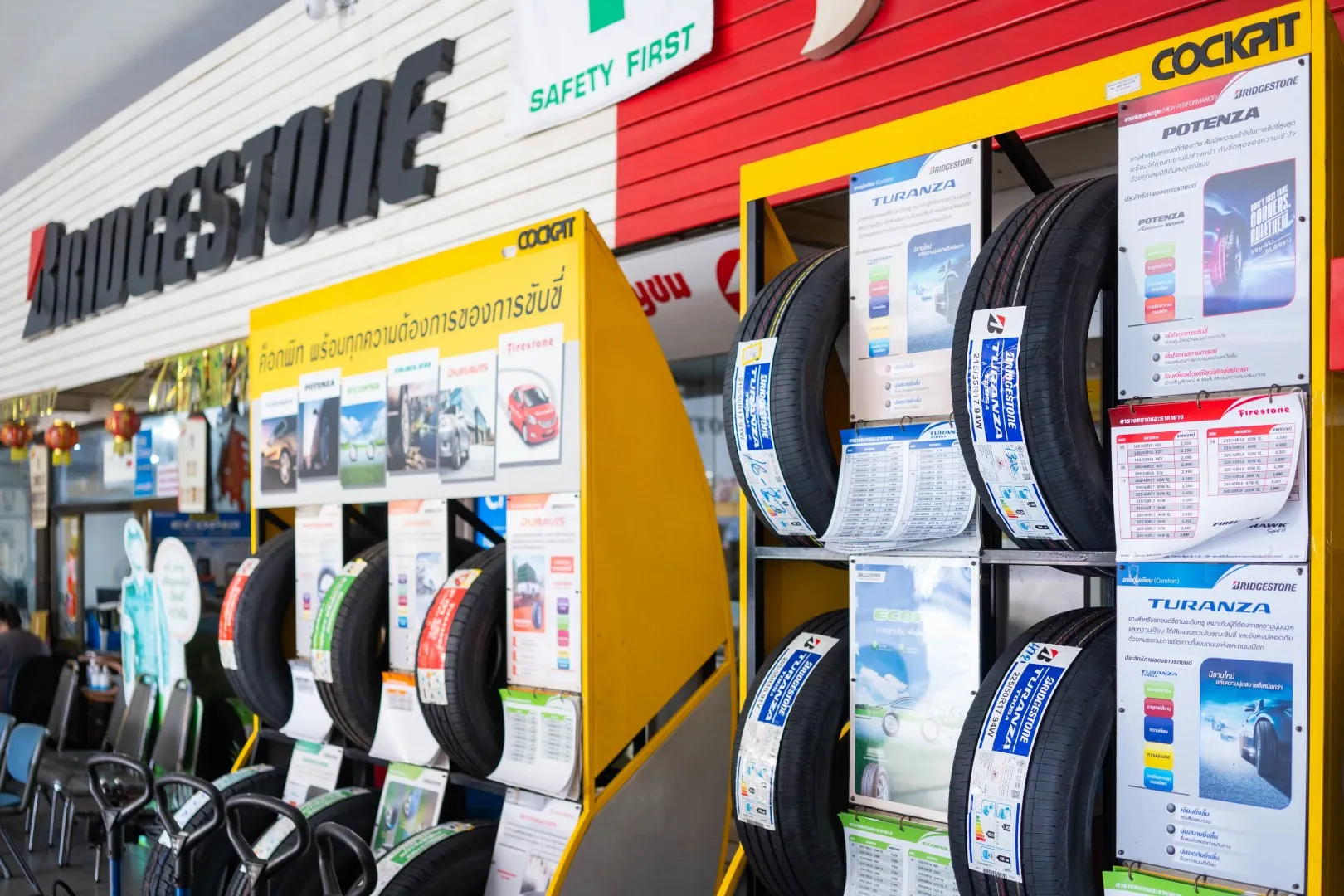 เพื่อให้ทริปของเราปลอดดภัย และราบรื่นตลอดการเดินทาง แนะนำให้เลี้ยวรถเข้าไปที่ศูนย์บริการ Cockpit เลย ให้ช่างผู้ชำนาญทำการตรวจสอบดูแลยางรถยนต์เพื่อความชัวร์จะดีกว่า แนะนำให้ตรวจเช็คลมยางเดือนละ 1-2 ครั้ง พร้อมทั้ง สลับยาง, ตั้งศูนย์ และถ่วงล้อ ทุก 10,000 กิโลเมตร สำหรับใครที่ไม่ได้เปลี่ยนยางนานมาก ๆ แล้ว ก่อนออกเดินทางไกลต้องเปลี่ยนยางกันซะหน่อยนะ สามารถเช็คราคายางได้ที่ศูนย์บริการเลย หรือถ้ายังไม่รู้ว่าจะเปลี่ยนยี่ห้อไหนก็สามารถสอบถามขอคำแนะนำจากพนักงานได้เลย แถมโปรโมชั่นยางก็ราคาดีมาก ๆ